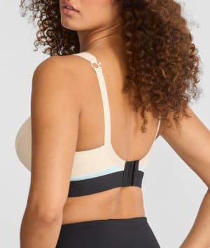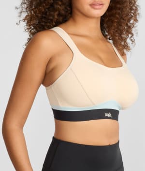 • Stay dry in this moisture-wicking, wire-free sports bra
