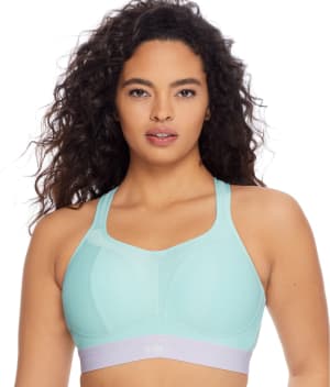 • Stay dry in this moisture-wicking, wire-free sports bra