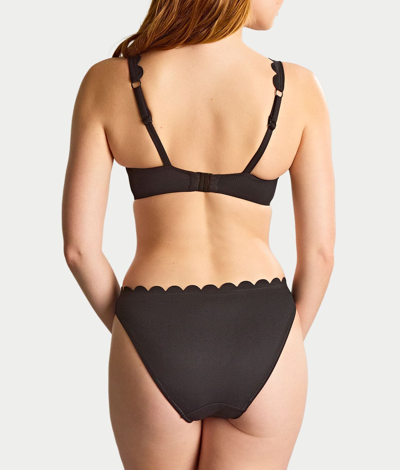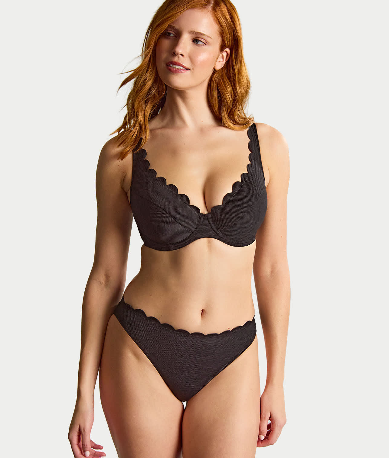 • Flirty plunging bikini top with scalloped trim