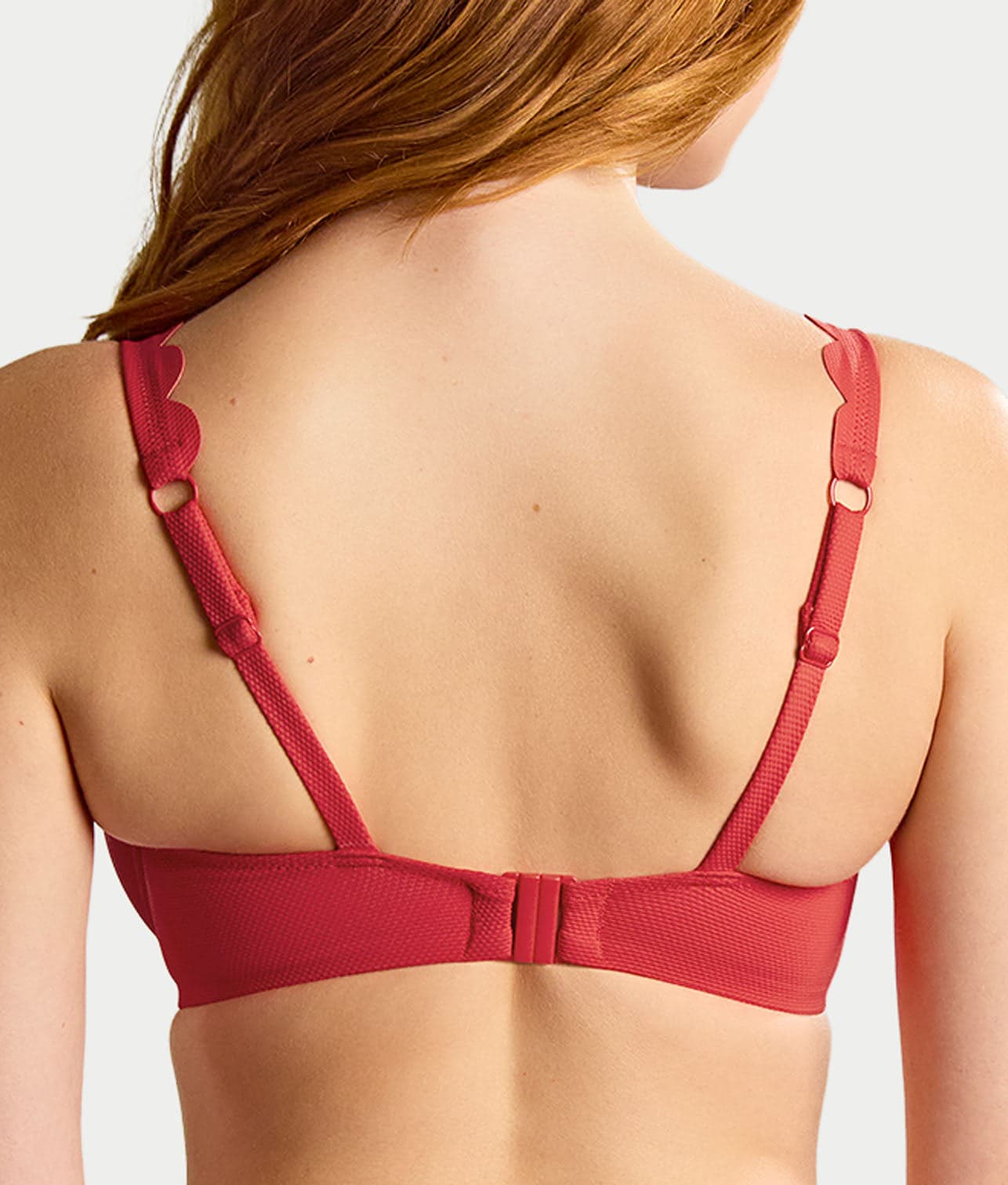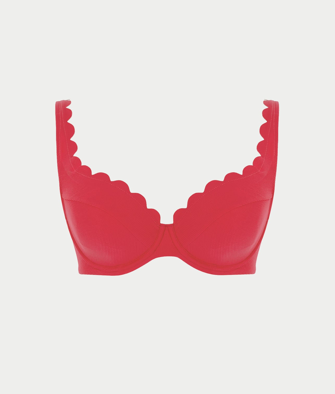• Flirty plunging bikini top with scalloped trim