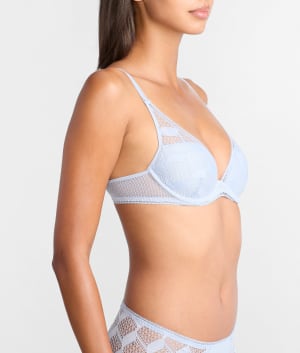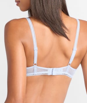 • Darted seamed cups are lined with foam with a delicate plunging neckline