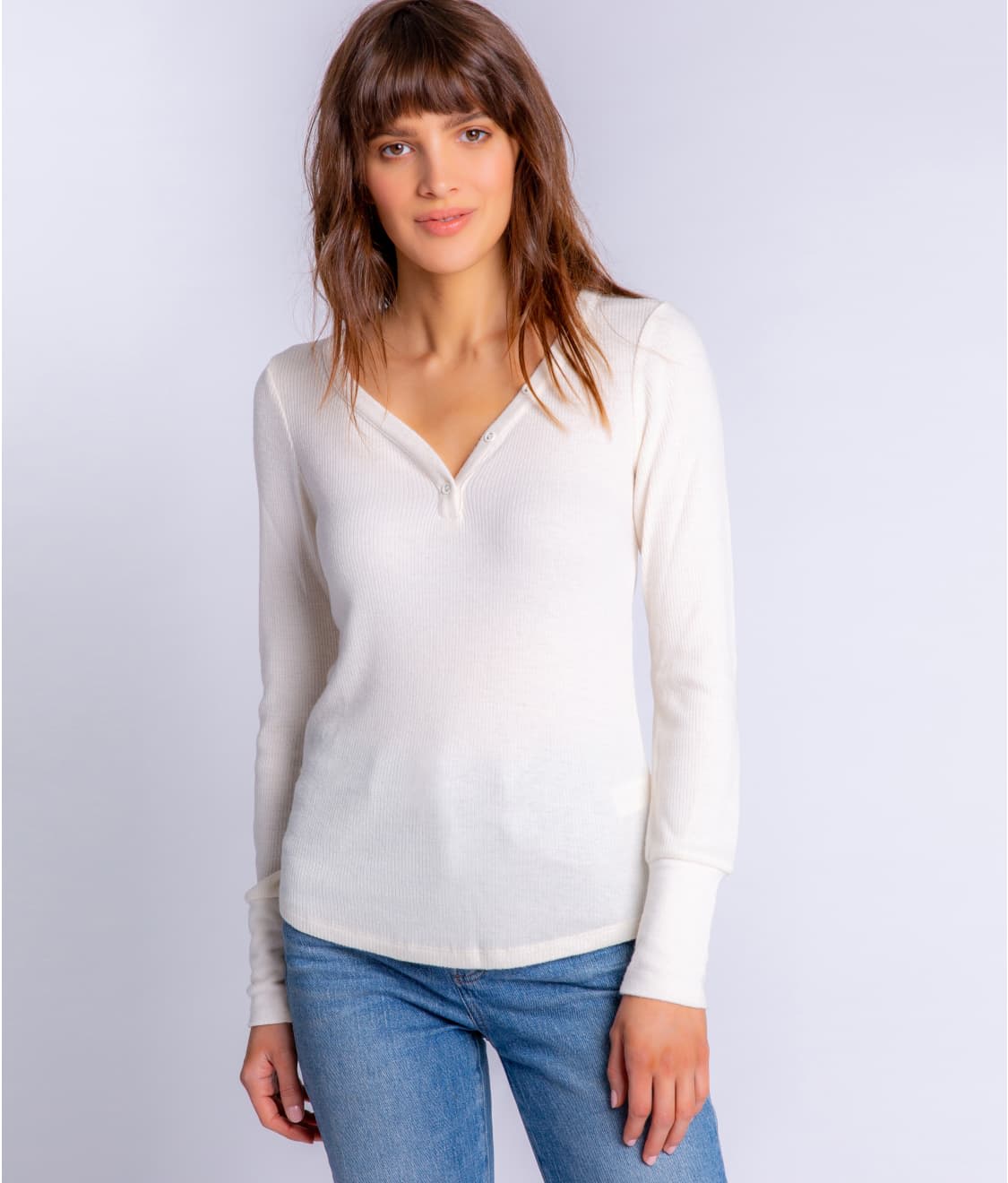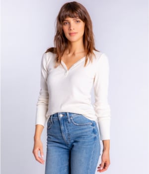 • Henley neckline with long sleeves