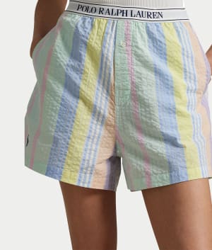 • Relaxed fit seersucker boxer shorts for sleep or lounge