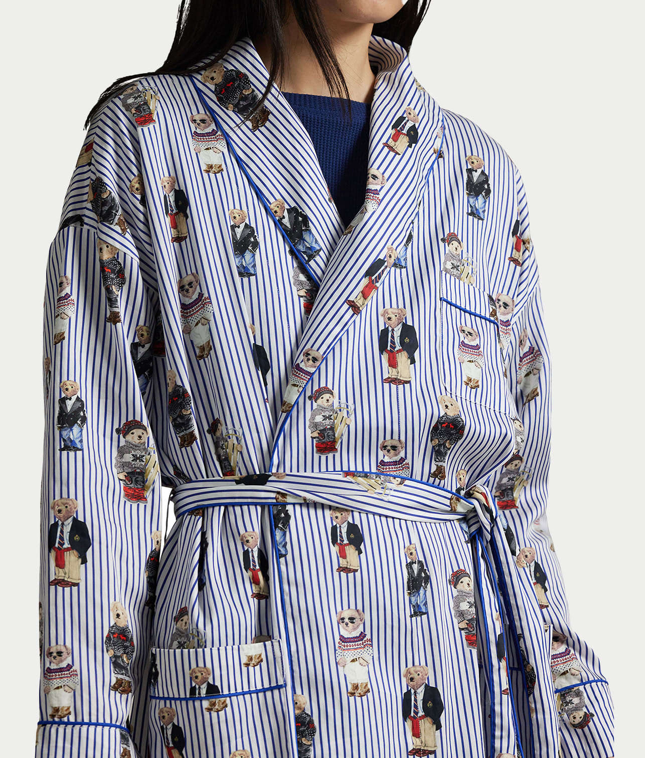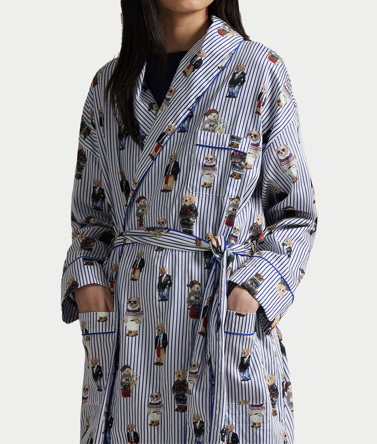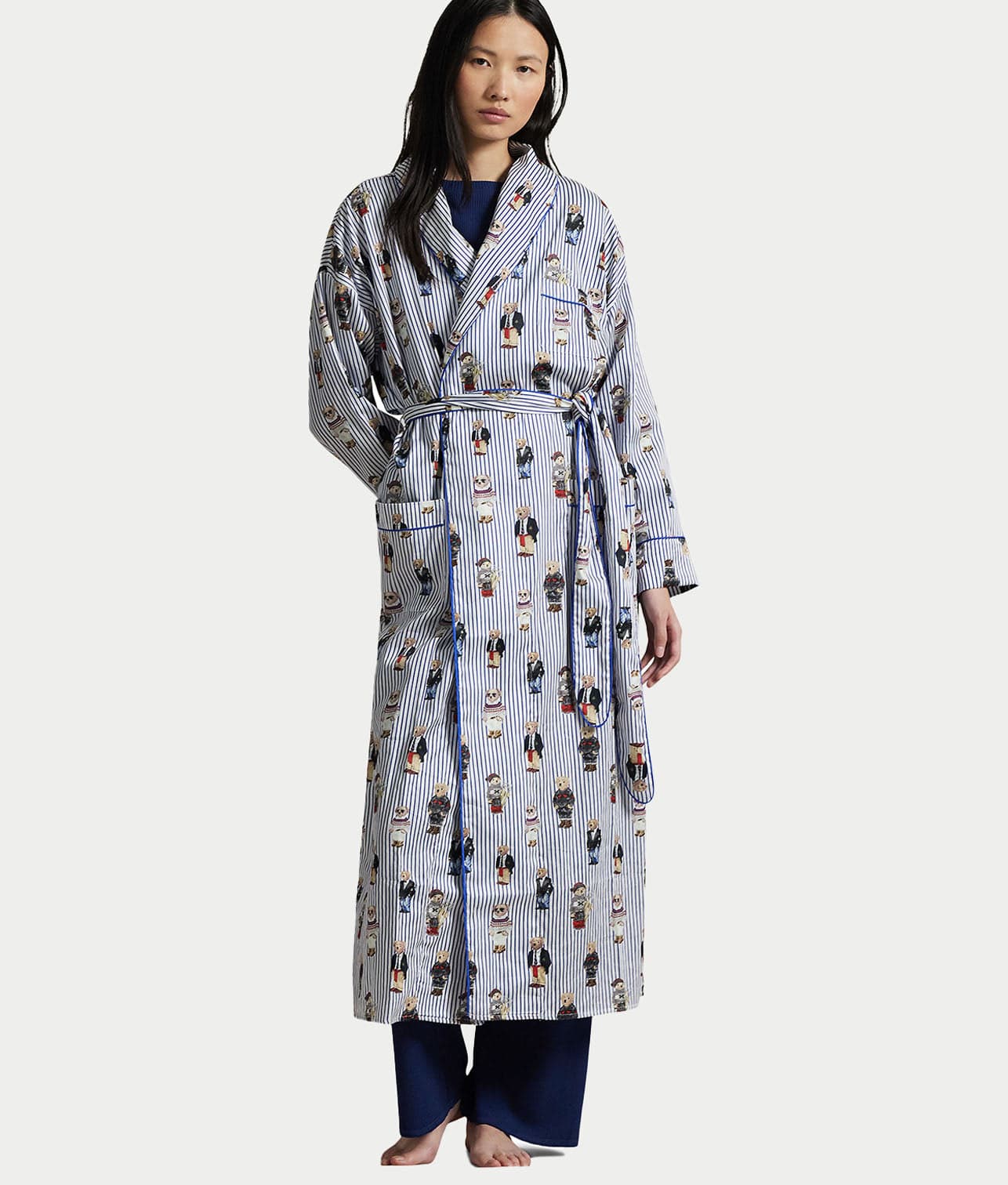 - Relax and stay in for the night in this striped robe with Polo bears