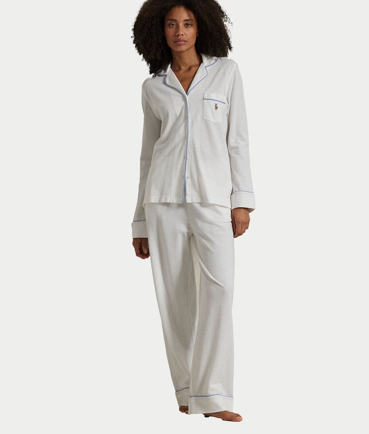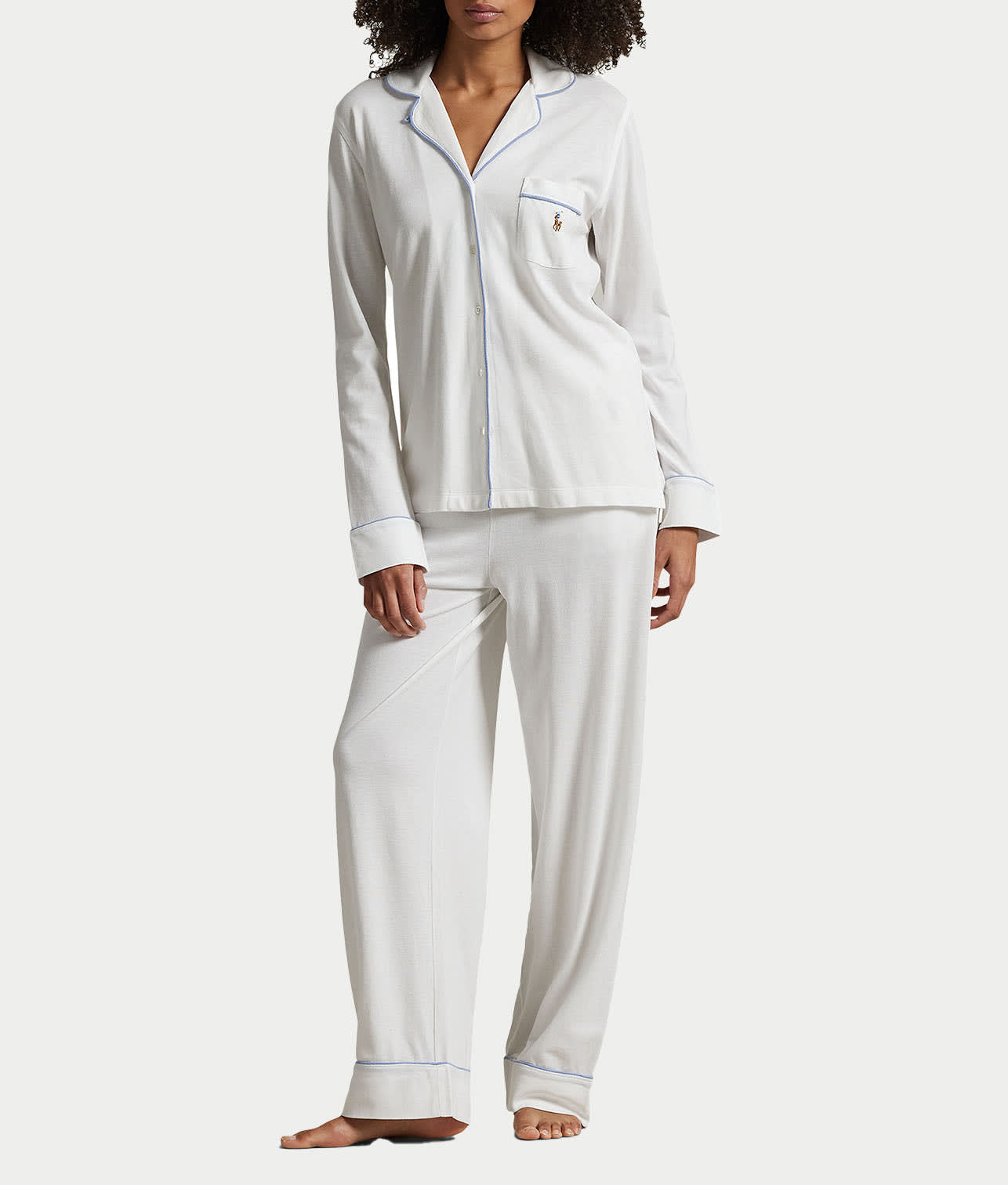 - Embroidered pony at left chest pocket and left hip
