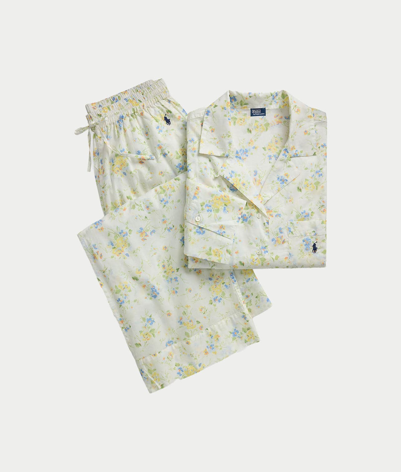 Botanical Floral Long Sleeve Woven Pajama Set Color