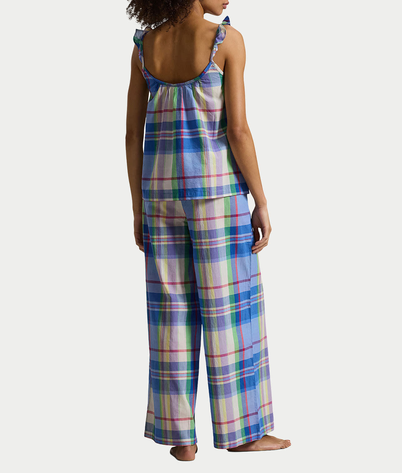 Madras Plaid Ruffle Cami Woven Pajama Set Color