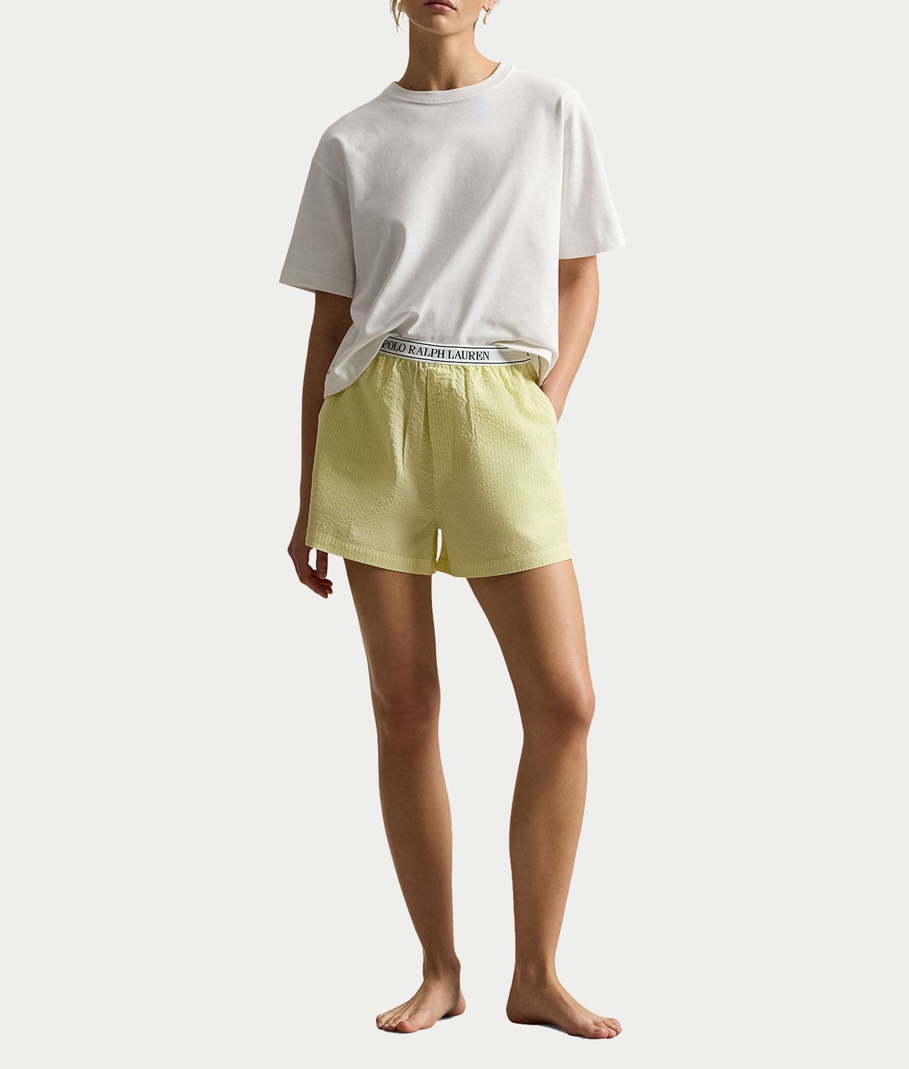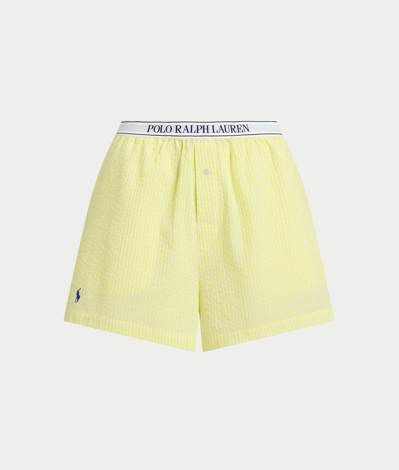 • Relaxed fit seersucker boxer shorts for sleep or lounge