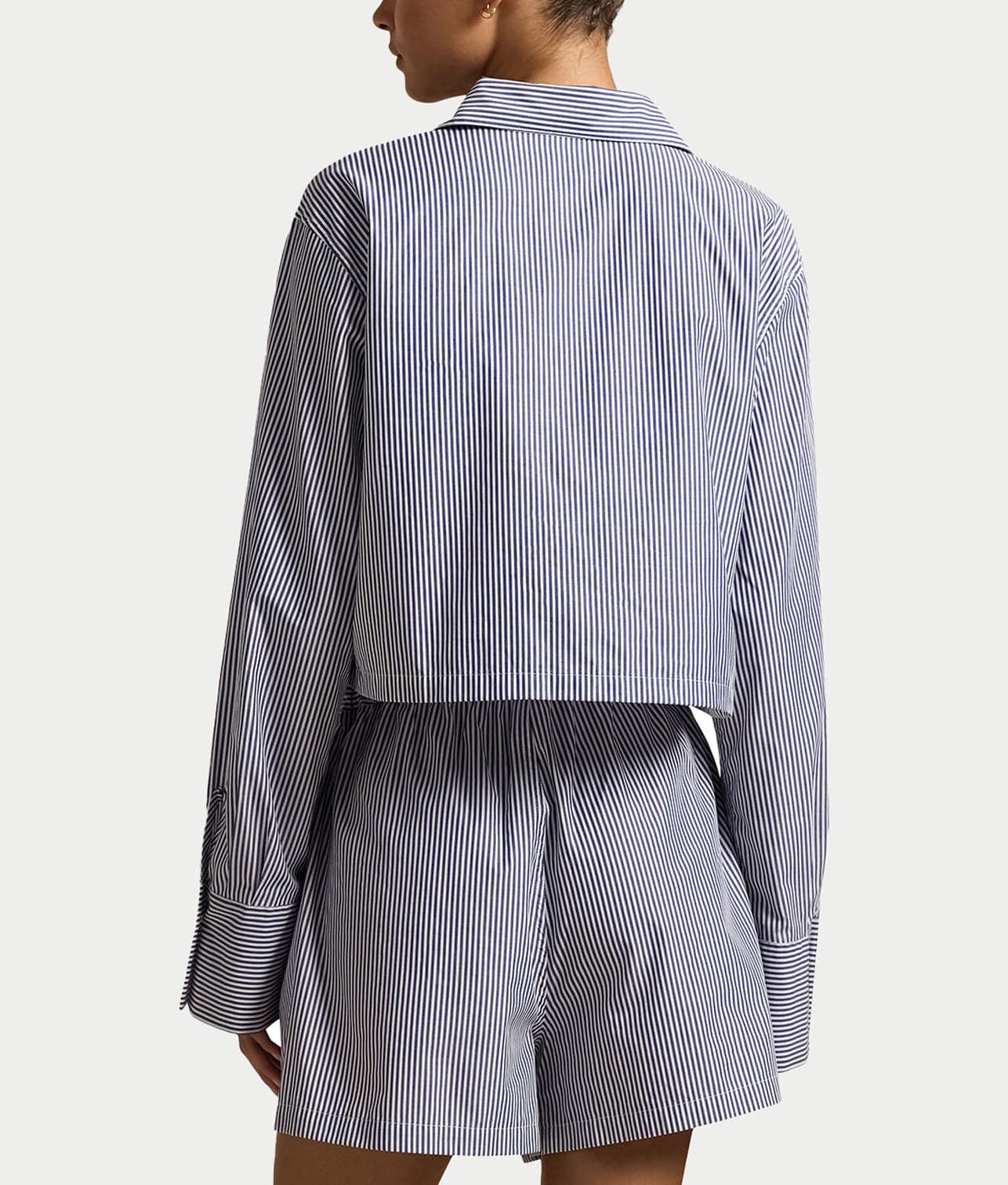 • No-dig elastic waistband on shorts with decorative button sewn fly