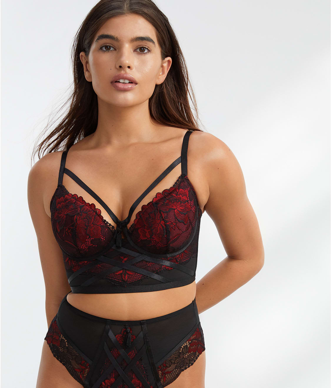 - Feel supported in this pretty underwire longline bra