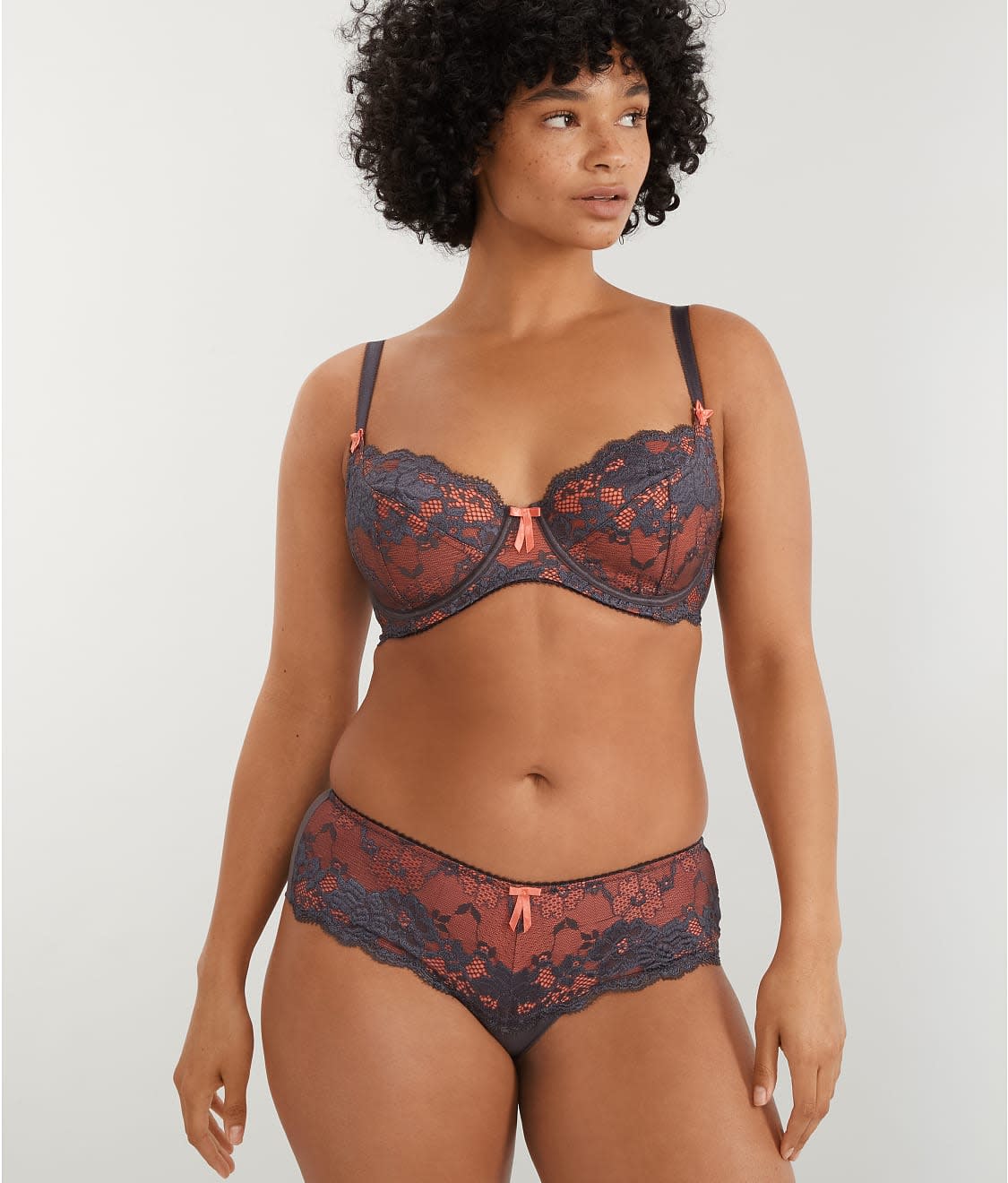• Look sexy in this lace boyshort with cheeky mesh rear
