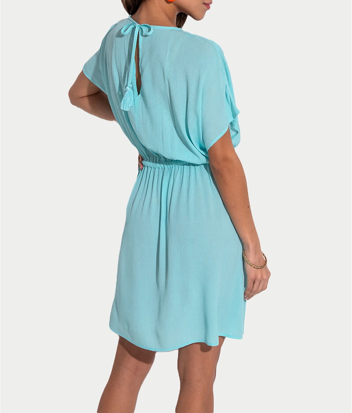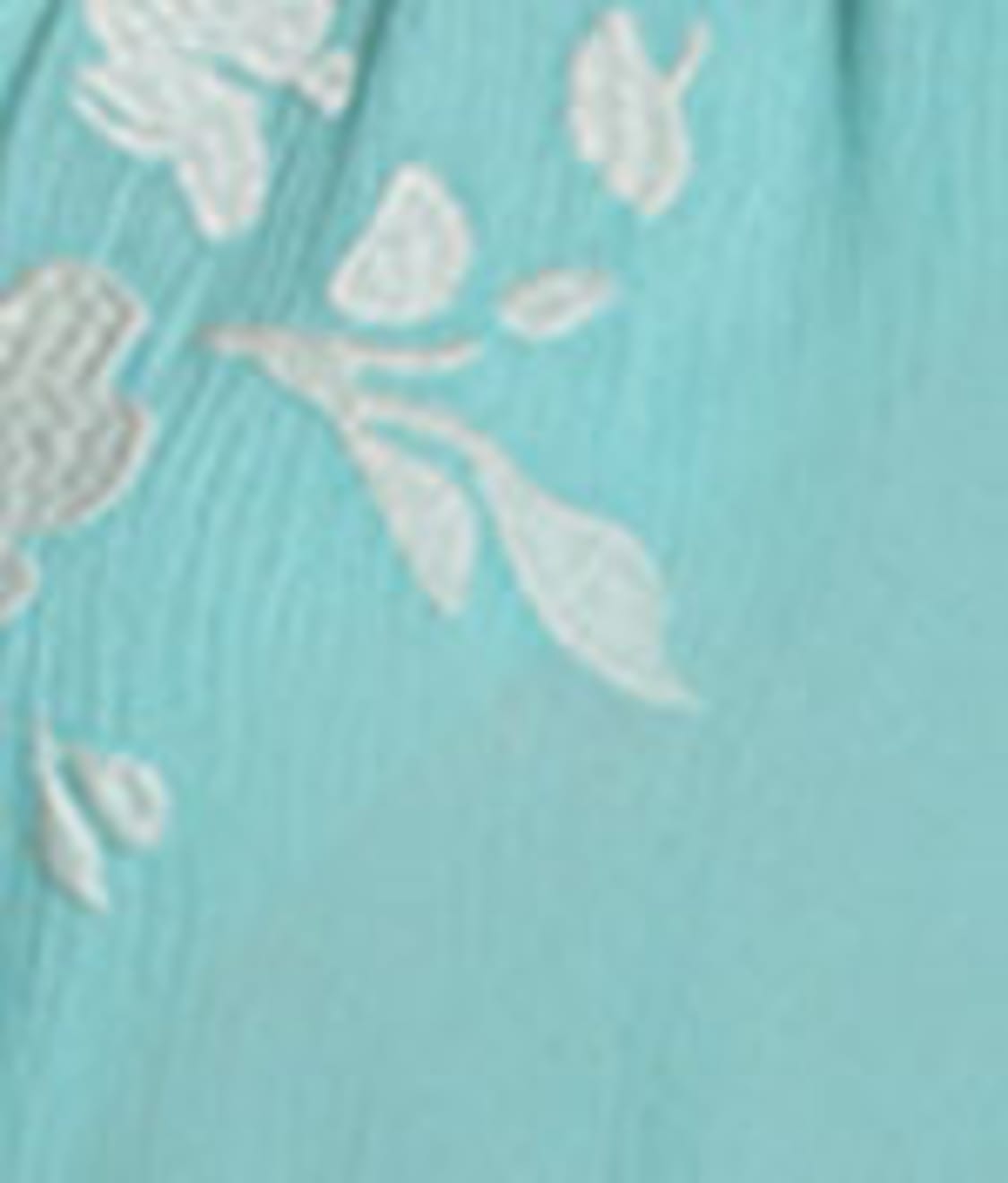 - Embroidered crochet V-neckline with flowy 3/4 length sleeves