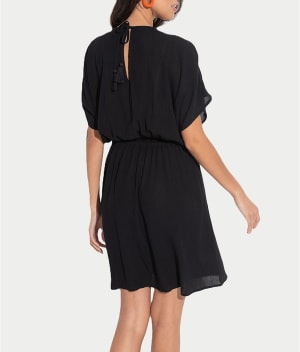 • Embroidered crochet V-neckline with flowy 3/4 length sleeves