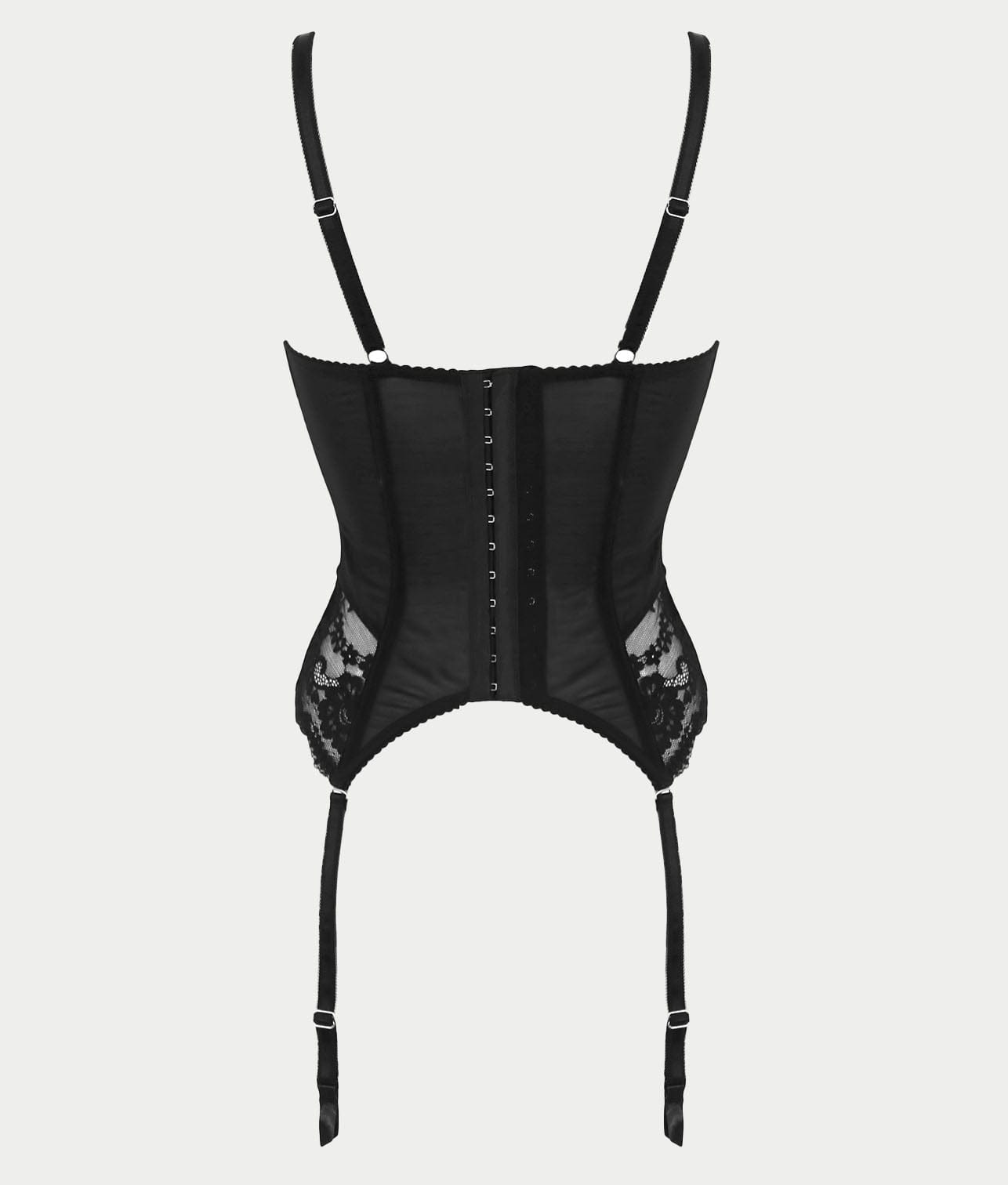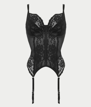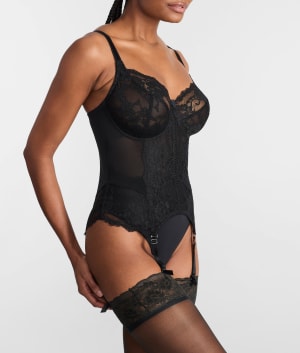 • Luxurious garter bustier adorned in beautiful floral scalloped lace