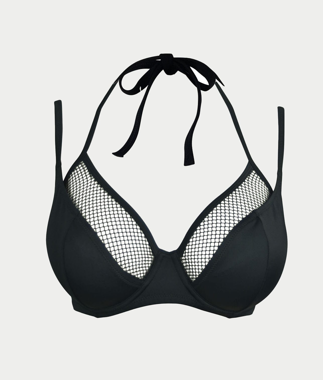 - Fishnet inset at bustline with self-tie halter straps