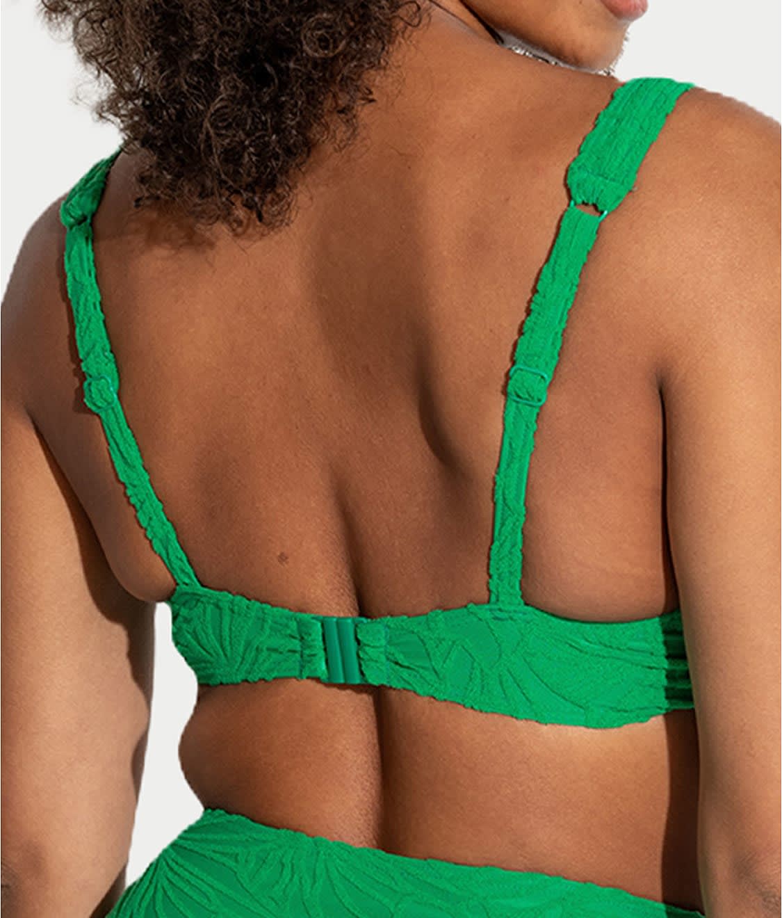 • Look your best by the pool in this textured bikini top