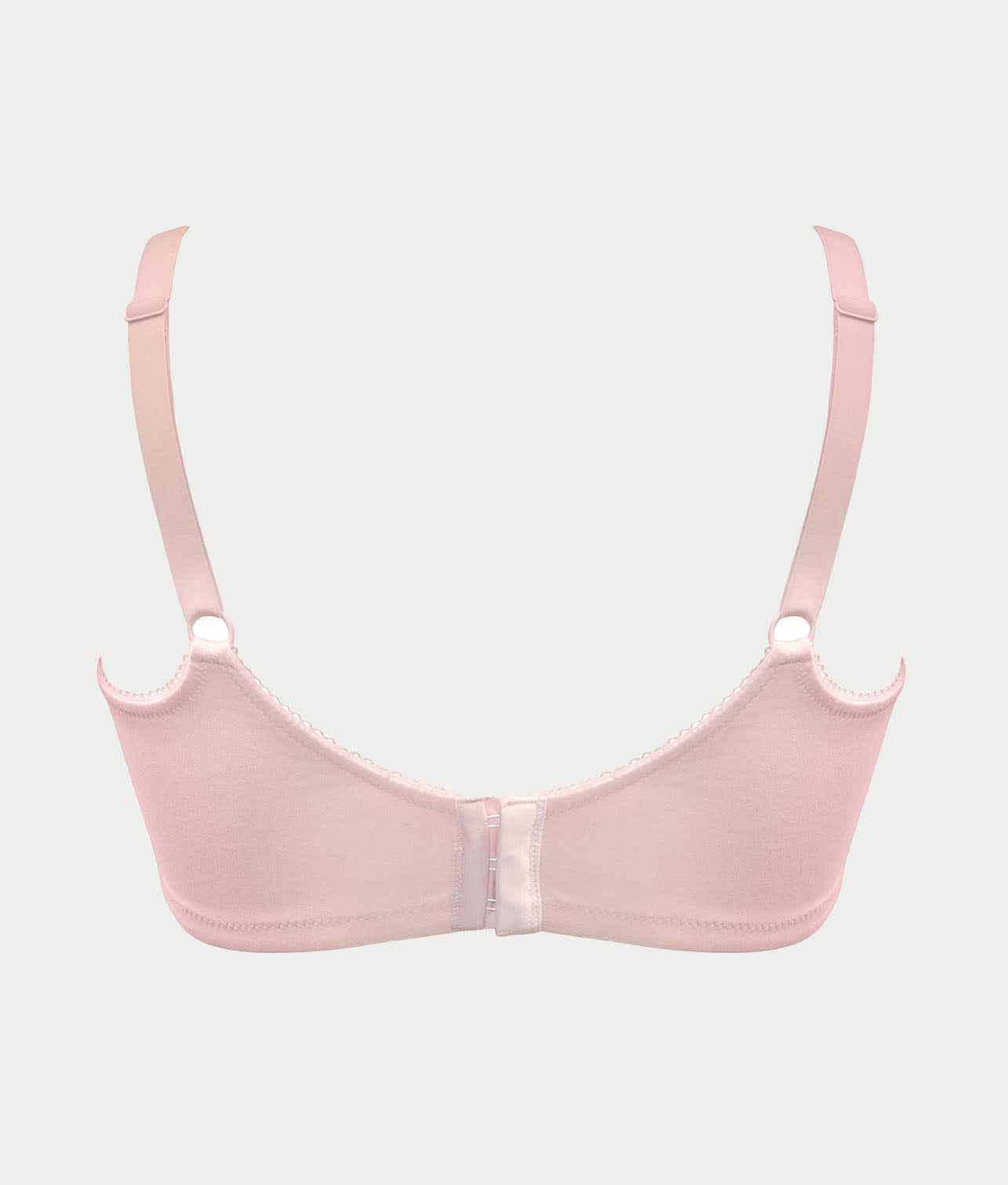 - 4-part seamed, unlined cups with scalloped lace trim