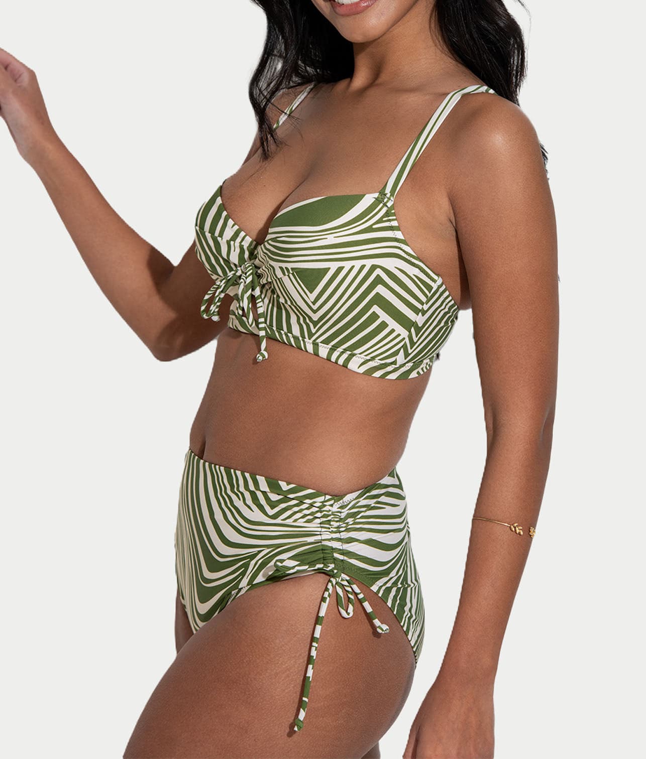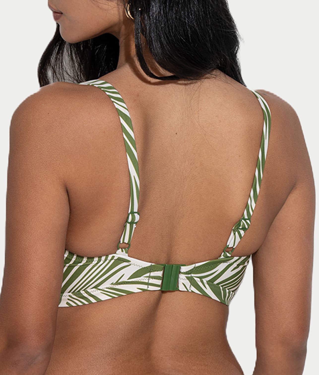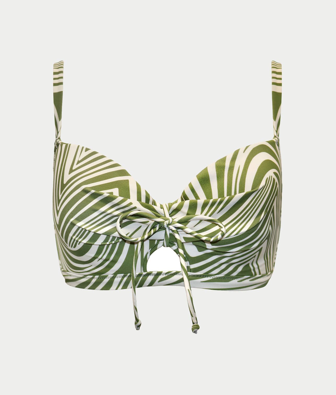 • Elevate your beachside look in this green stripe bikini top