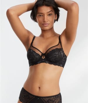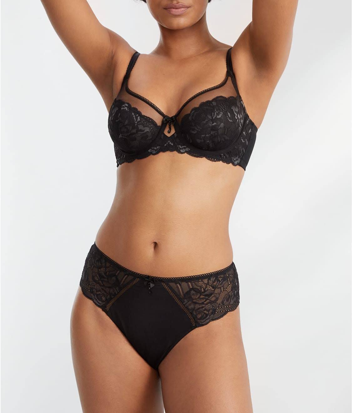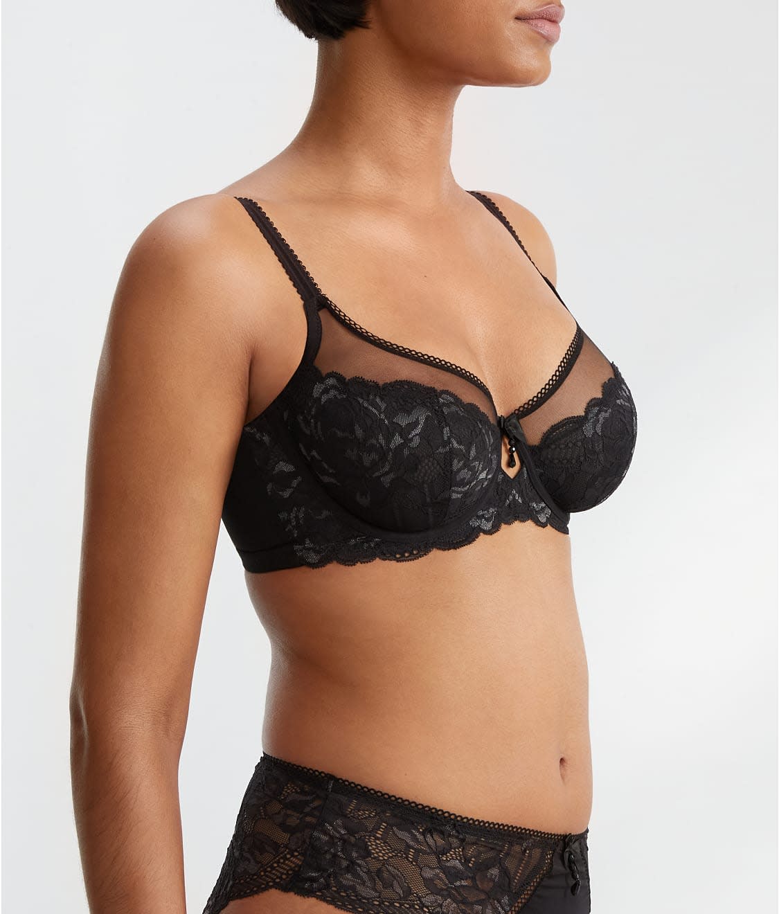 • Mesh-lined 3-part lace underwire cups with mesh at top