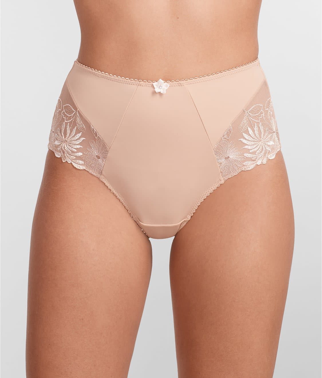 • Floral embroidered mesh insets at hips adds a flirty flair