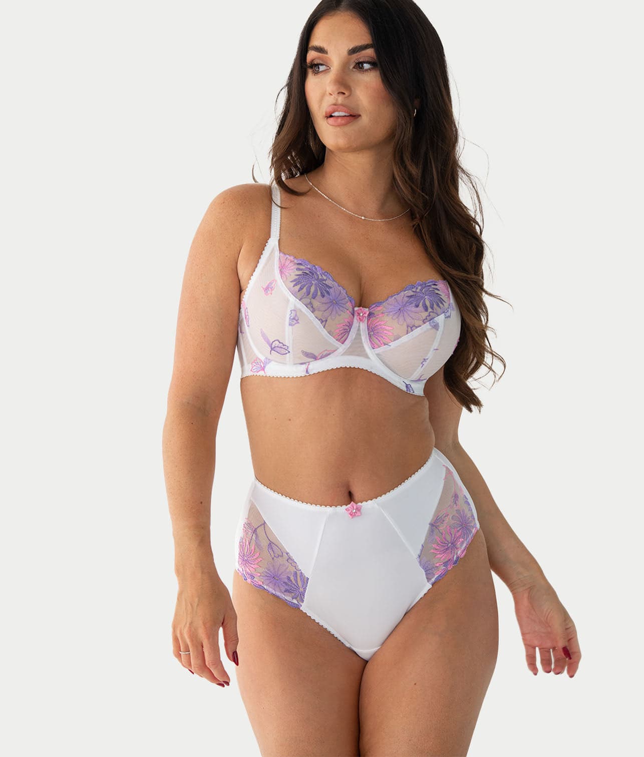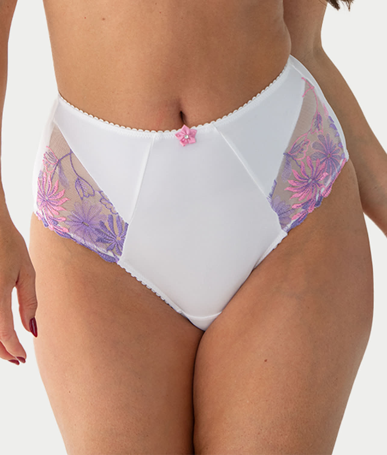 • Floral embroidered mesh insets at hips adds a flirty flair