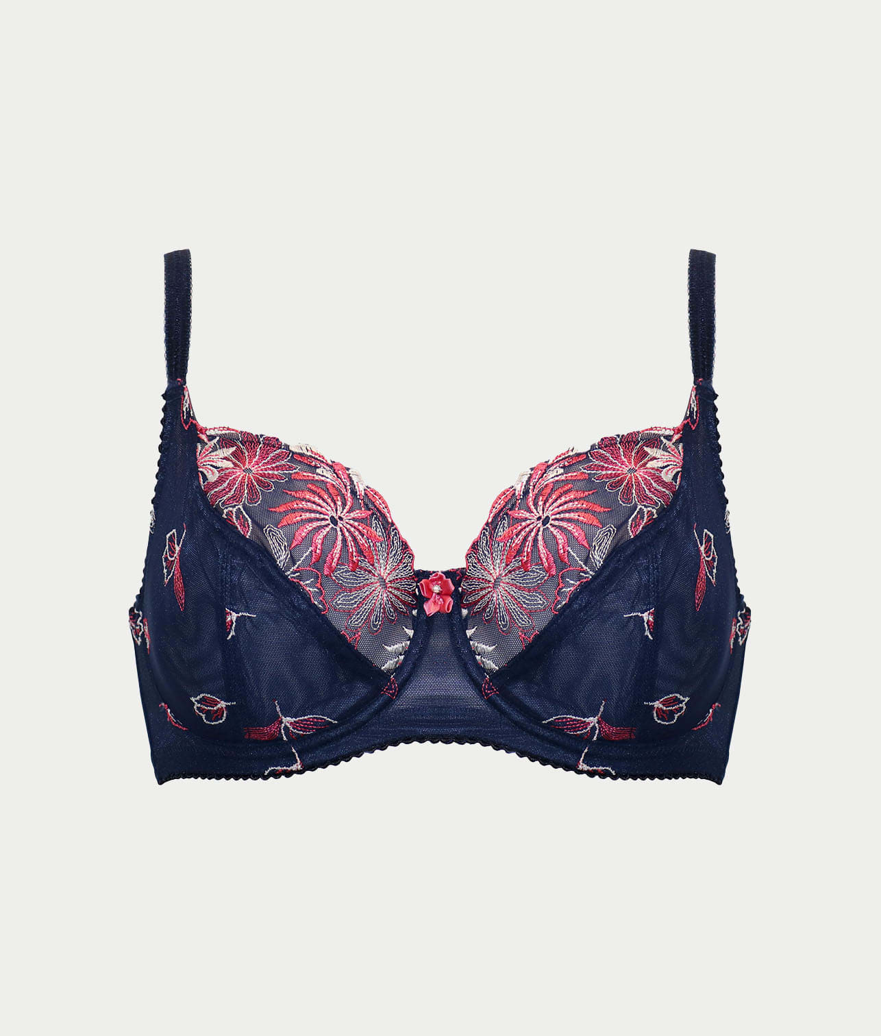 • Floral embroidered 3-part unlined cups with side boning