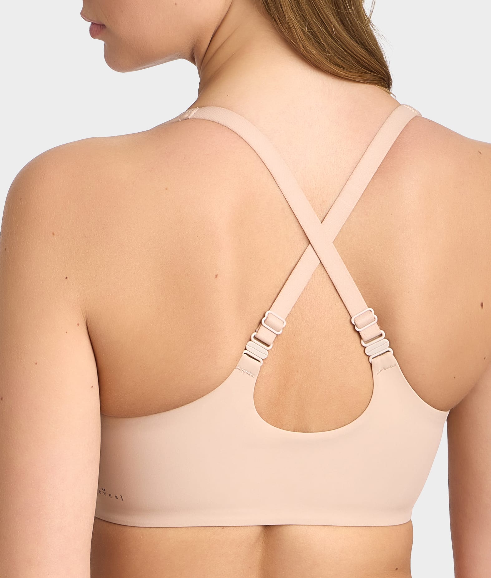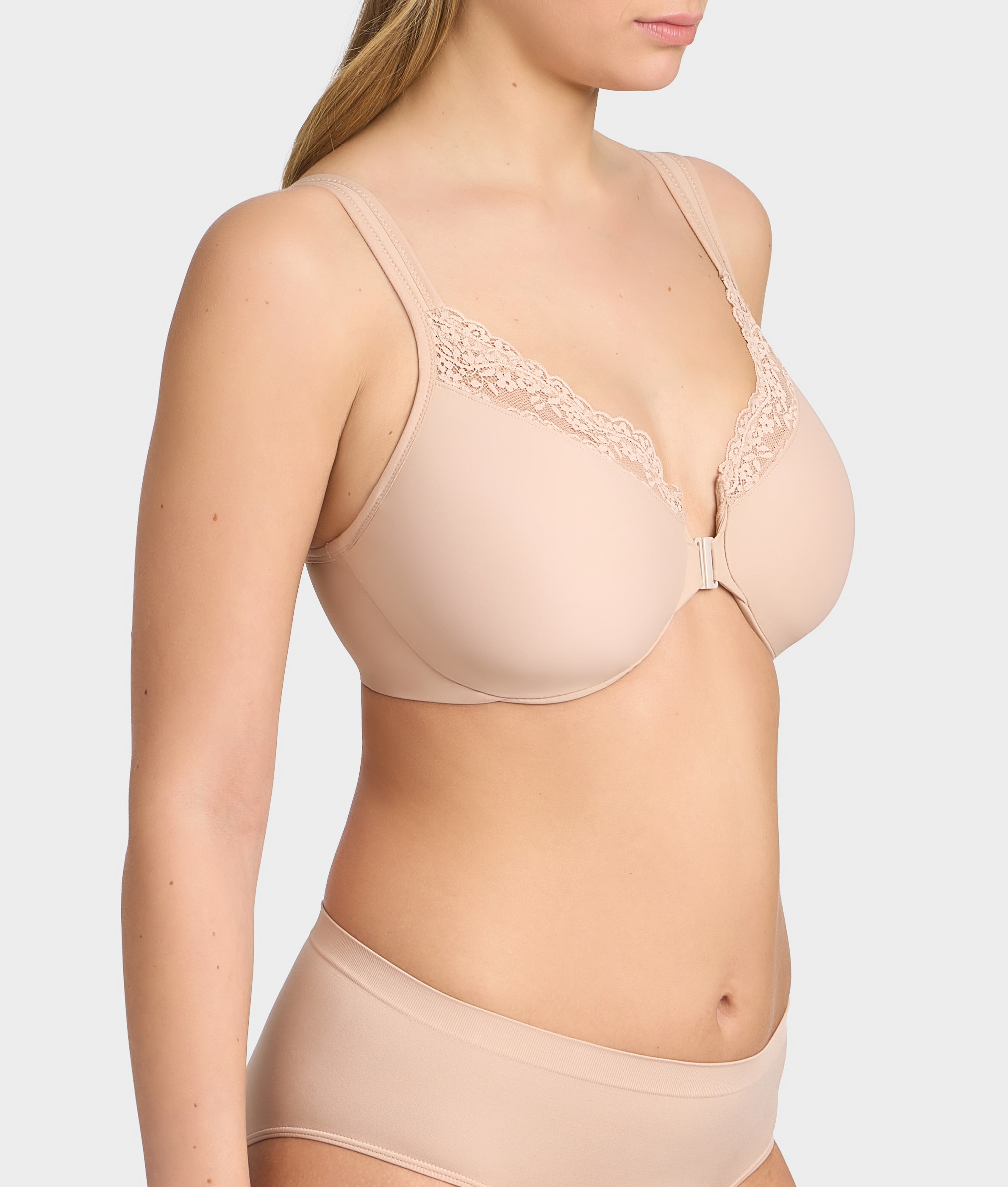 Seem up to an inch smaller in our minimizer that’s designed to be effortless in every way, from the front-closure and cushioned adjustable straps to the smooth, seamless stretch microfiber that does all the minimizing magic.