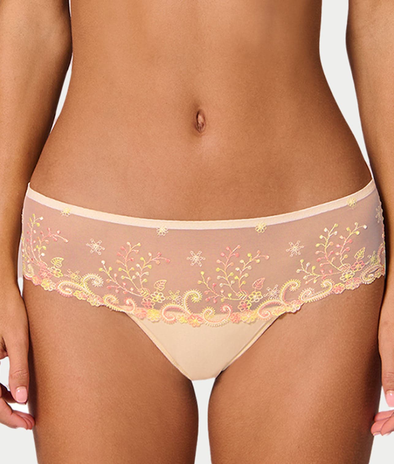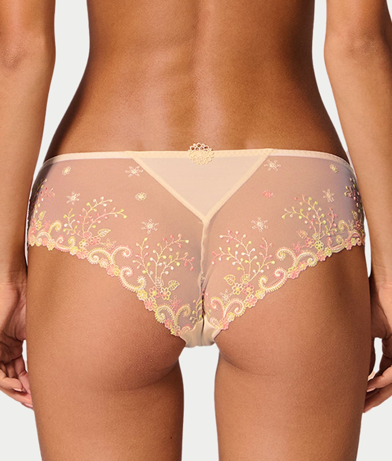 - Elegant tulle boyshort with floral lace embroidery