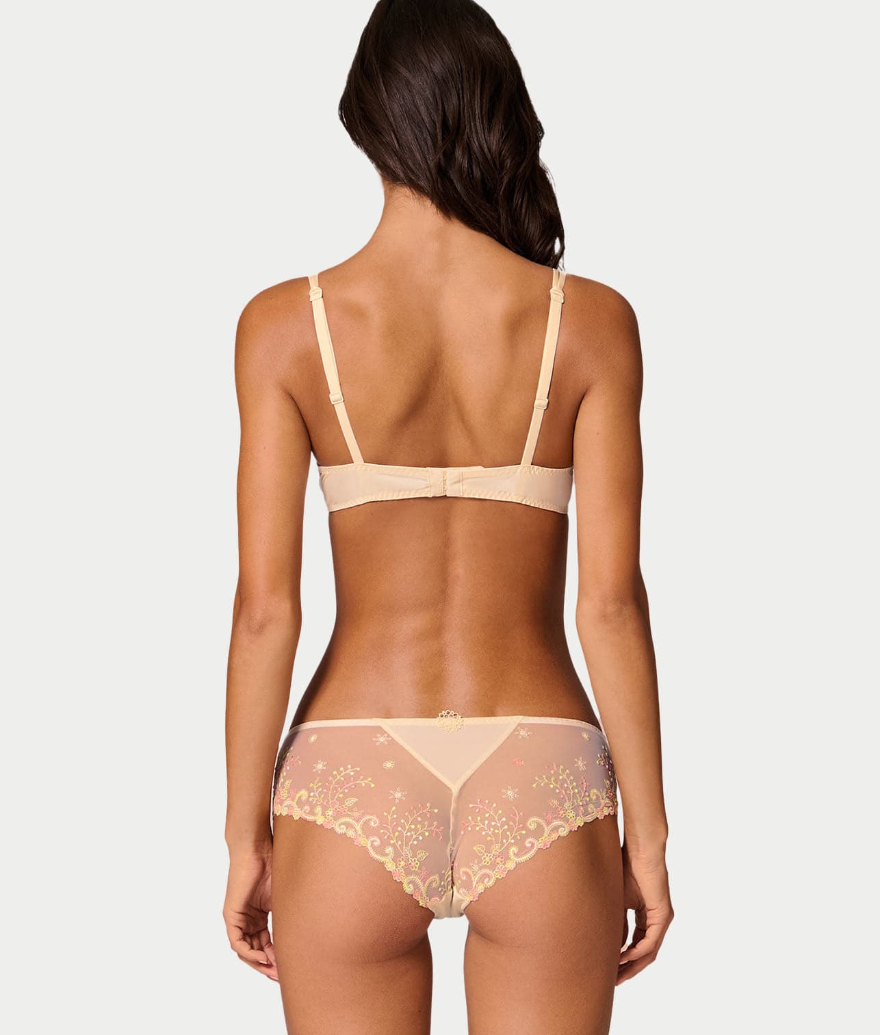 - Luxurious, sheer stretch tulle with cotton panel