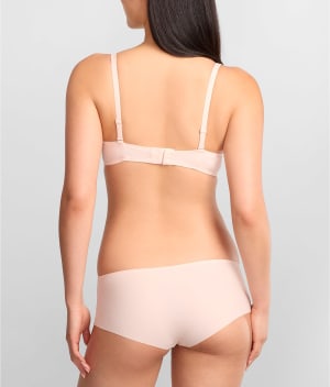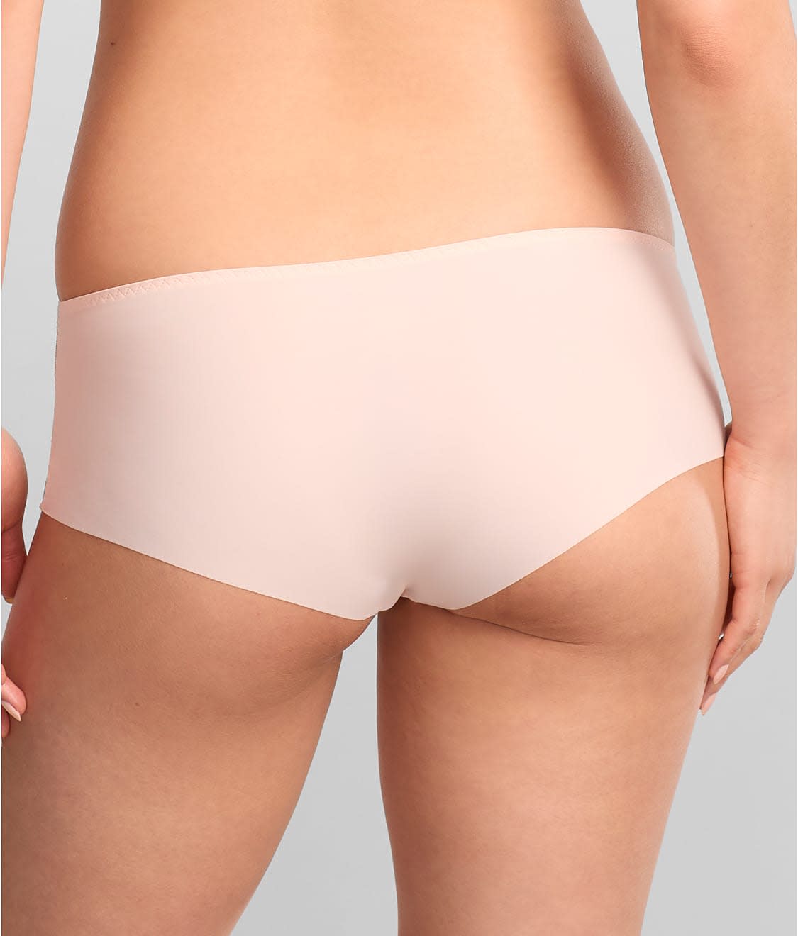 • Sleek, stretch microfiber and tulle with cotton gusset