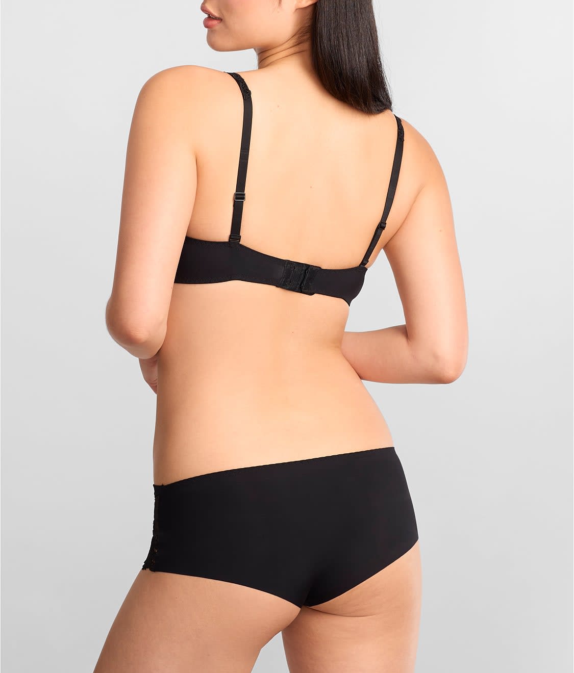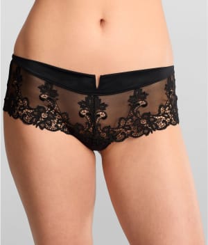 • Sleek, stretch microfiber and tulle with cotton gusset
