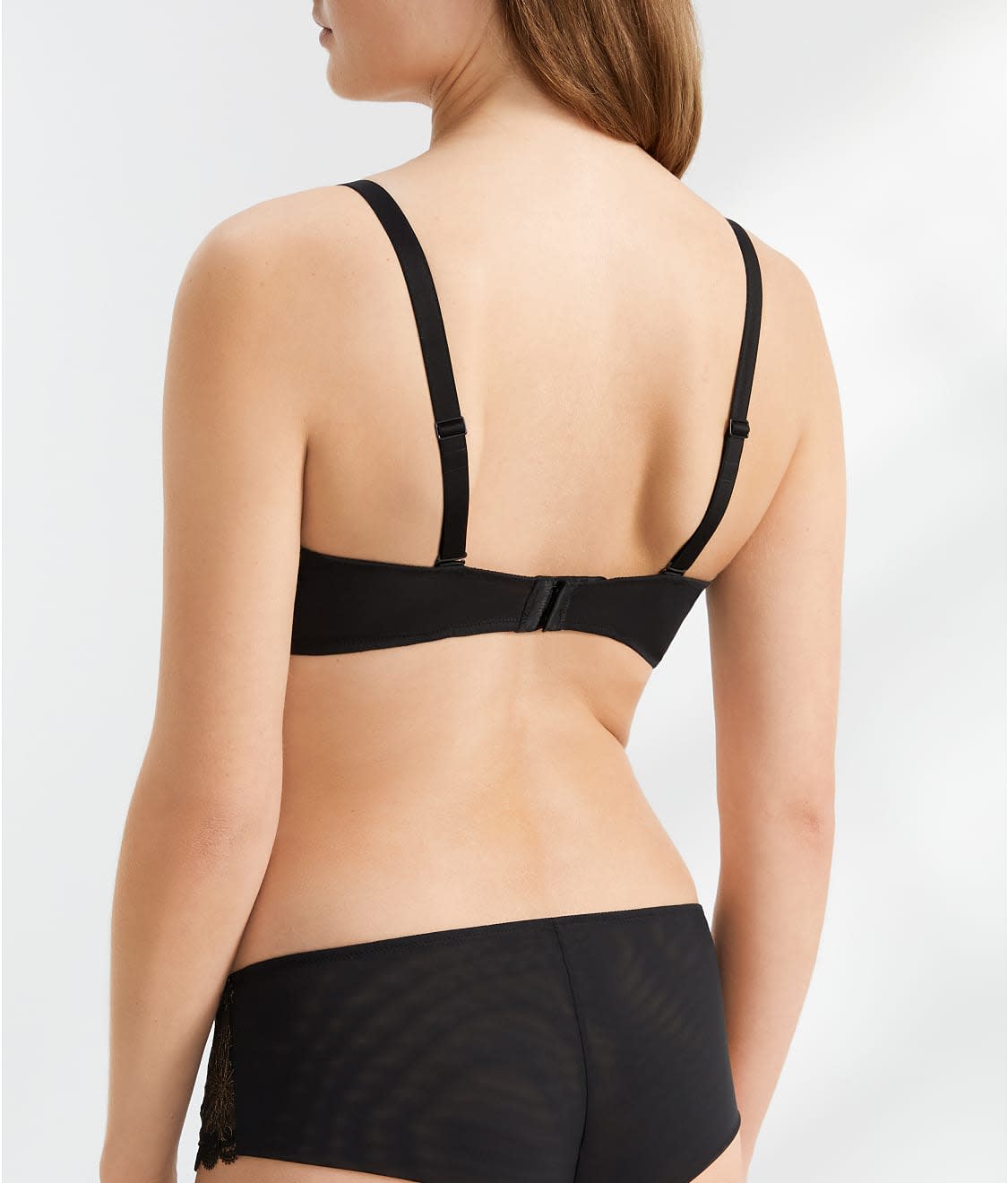 • Seamed mesh cups with intricate floral embroidery