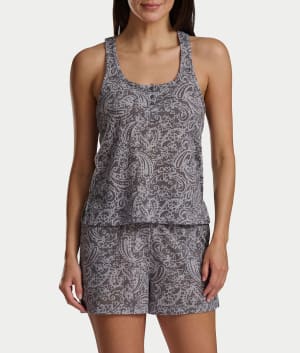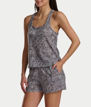 • Experience comfort in this tank and shorts pajama set