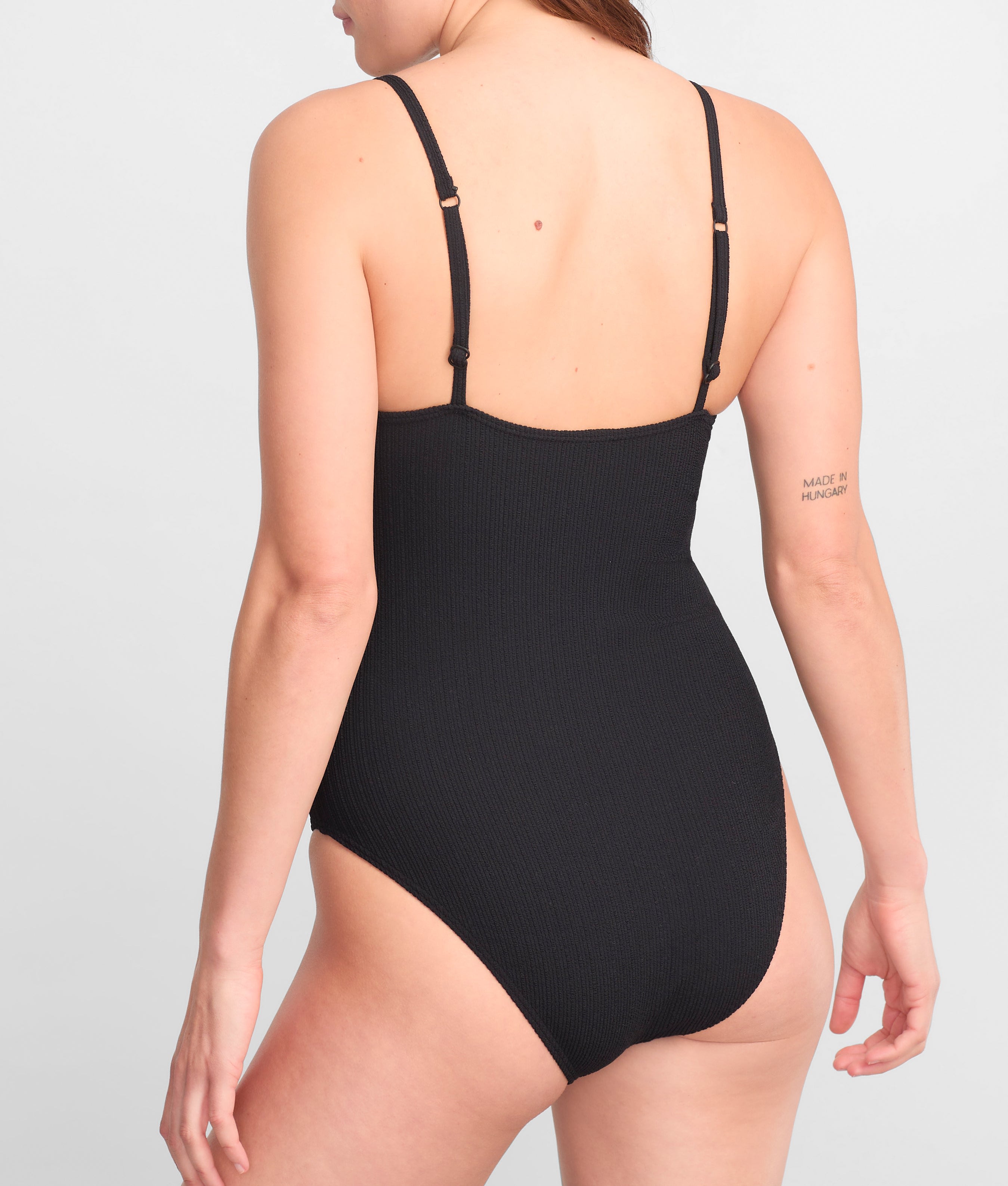 - Flattering scoop neck ribbed one-piece will turn heads on the sand
