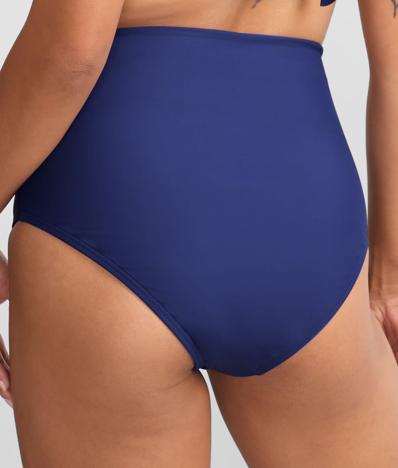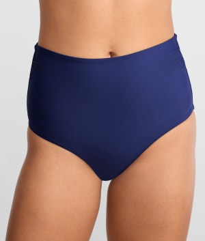 • High-waist with shirred sides for a flattering full coverage fit