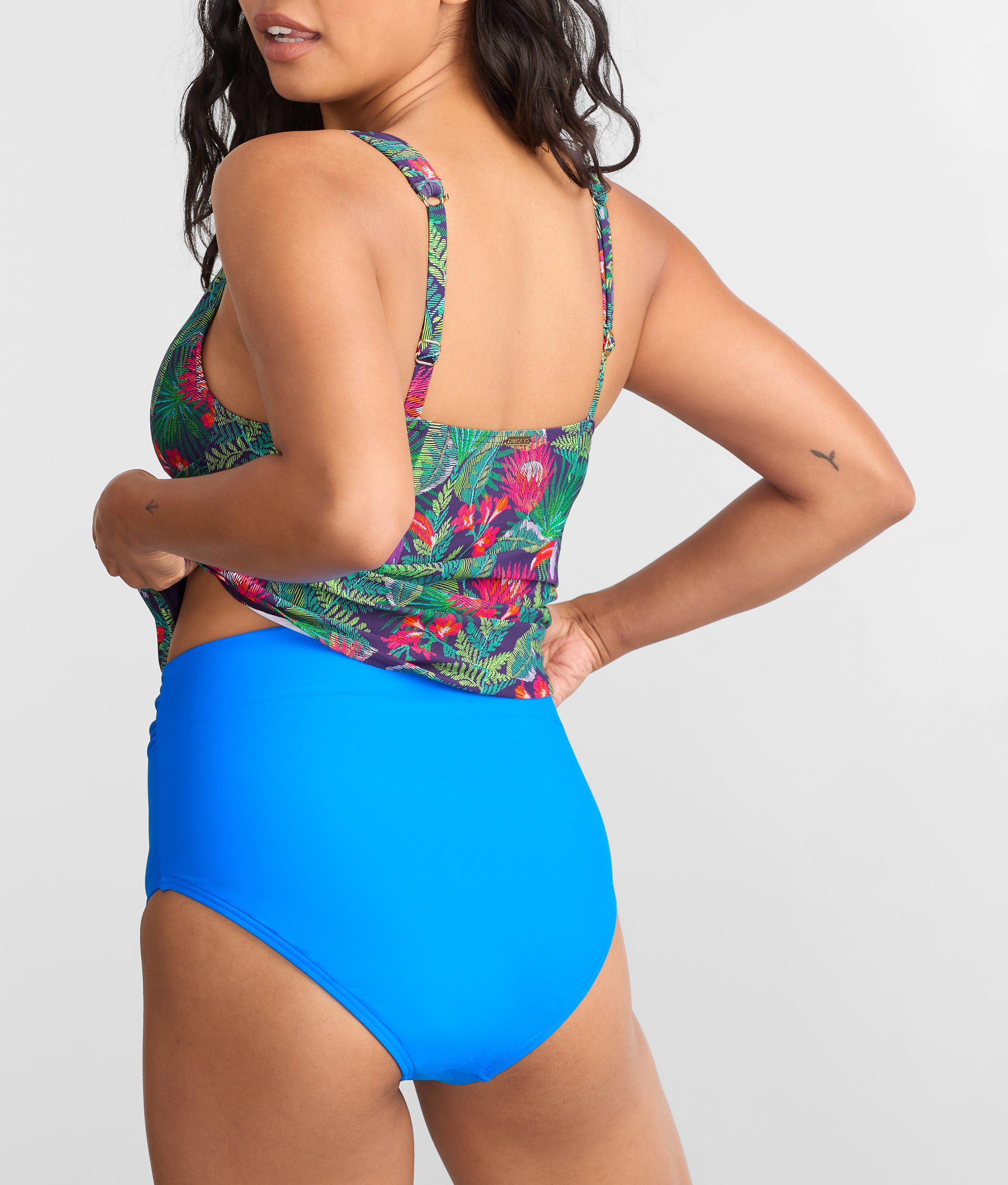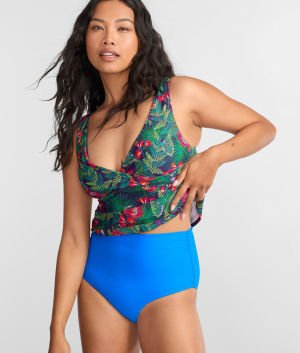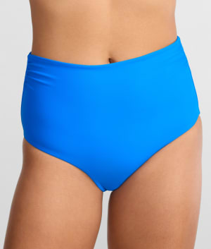 • High-waist with shirred sides for a flattering full coverage fit