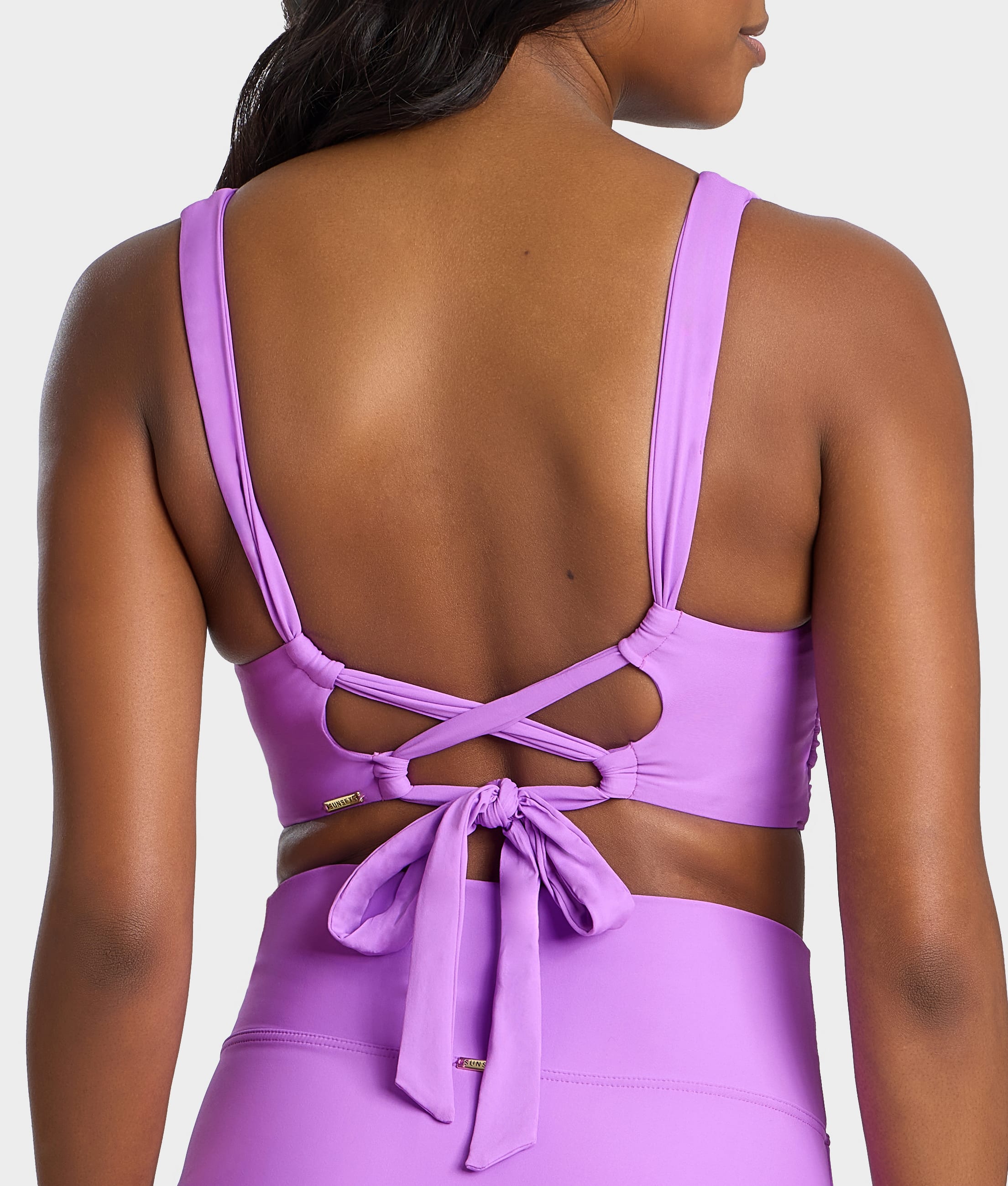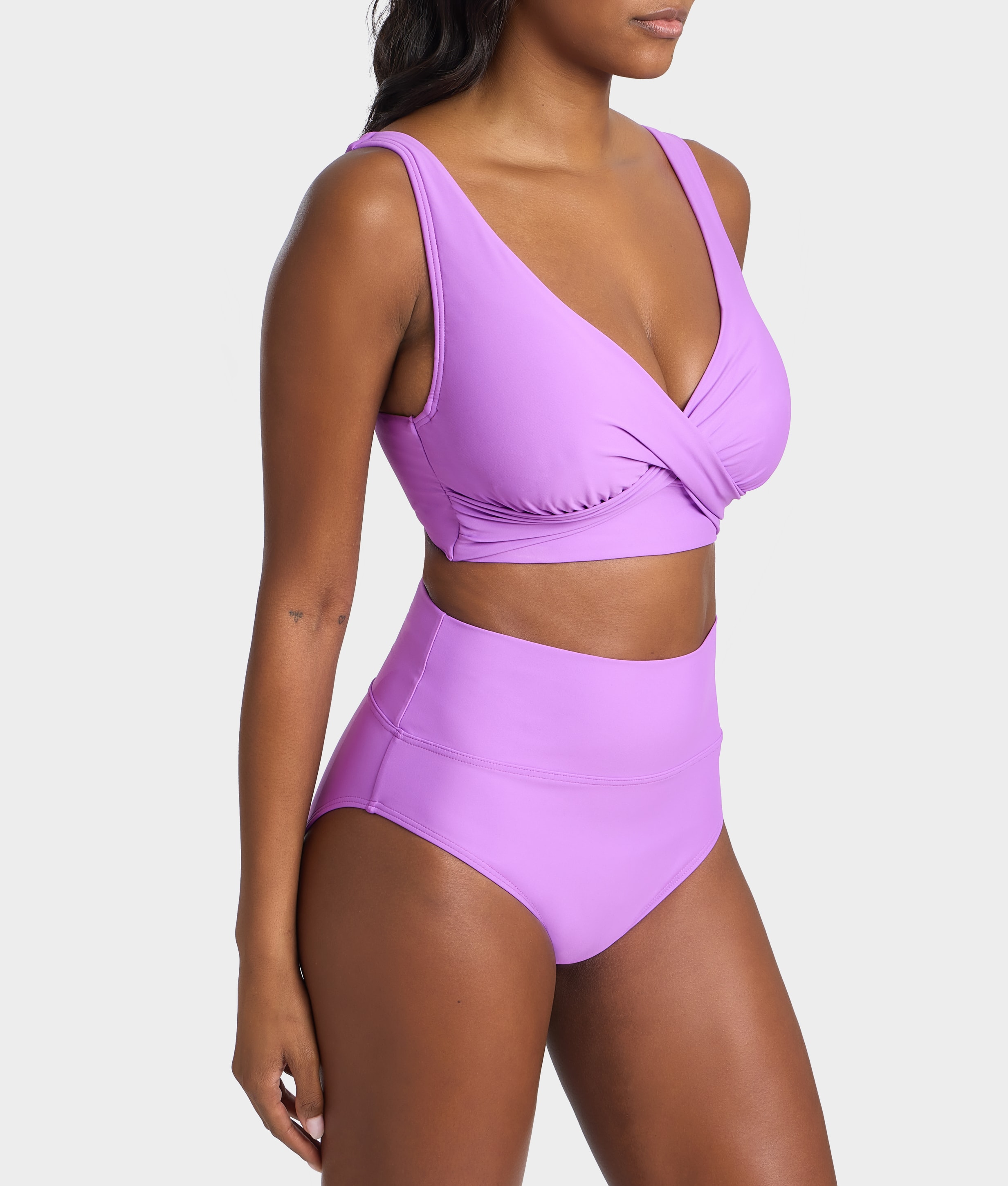 • Sunbathe in this trendy wrap-front bikini top