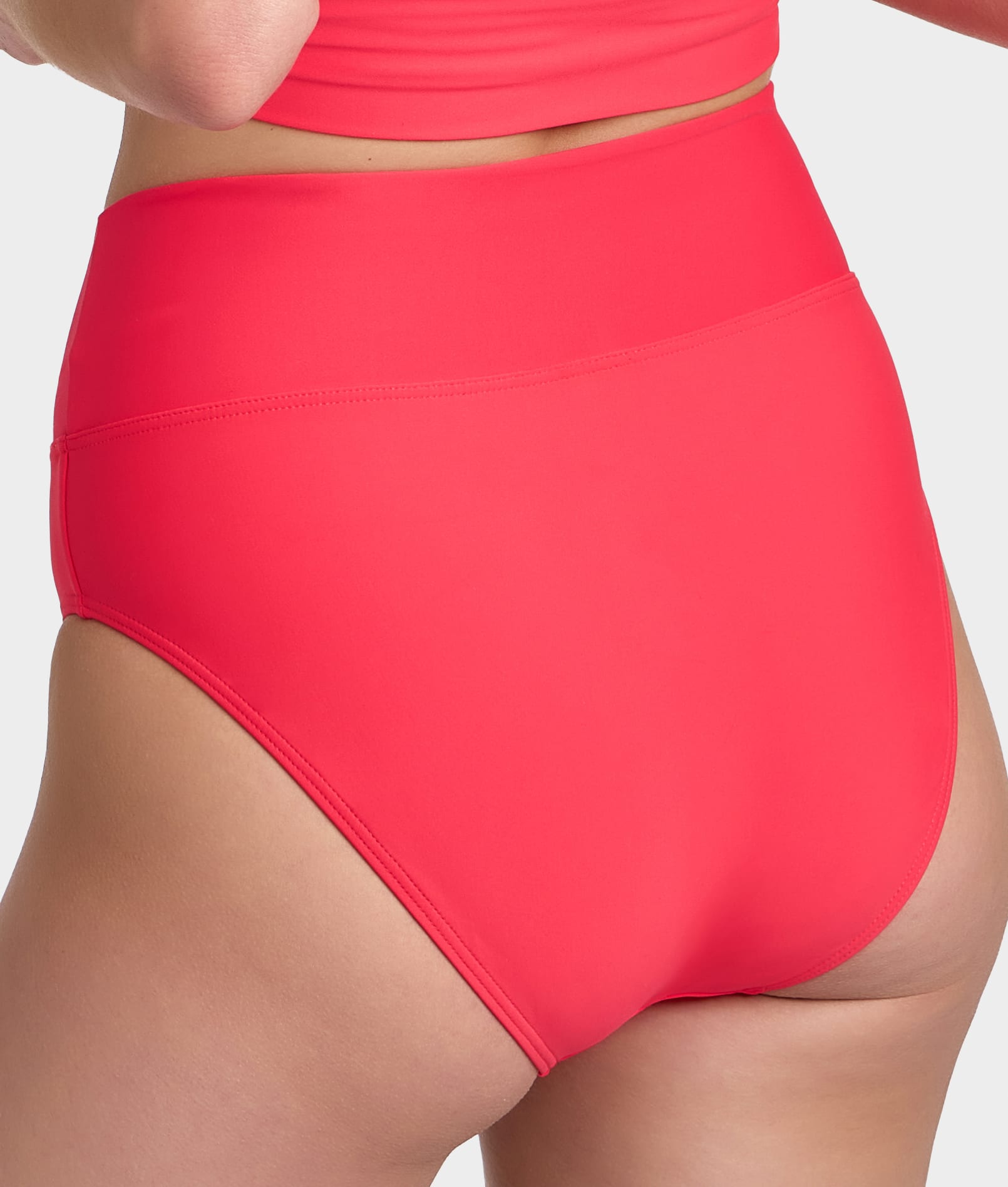 - Wide, elastic waistband can be worn up for modesty