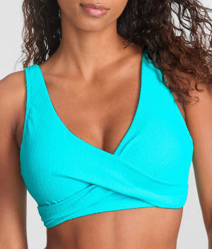 • Feel your best at the shore in this ribbed V-neck bikini top