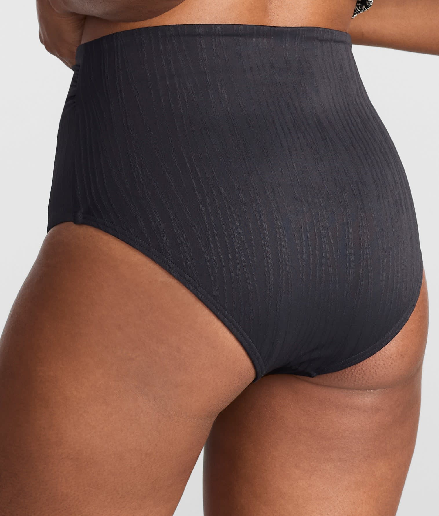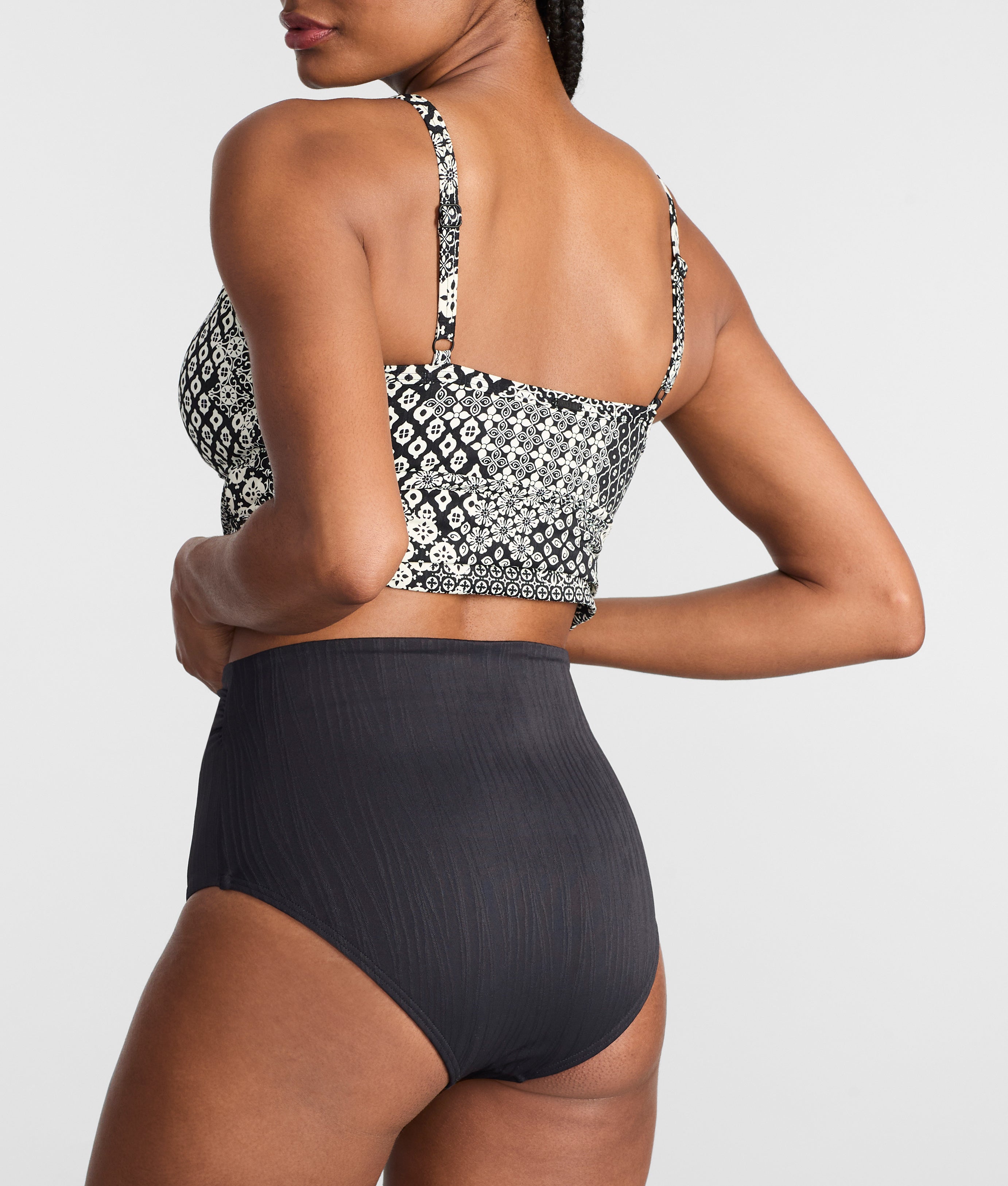 - High-waist with shirred sides for a flattering full coverage fit