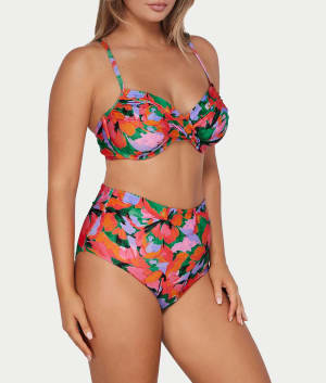 Printed Capri Fold-Over High-Waist Bikini Bottom Size