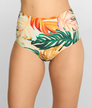 Printed Capri Fold-Over High-Waist Bikini Bottom Size