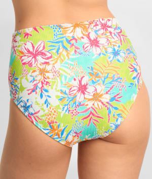 • High-waist with shirred sides for a flattering full coverage fit