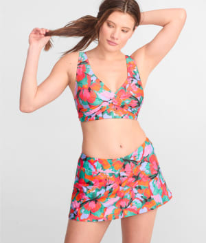 • Sunbathe in this colorful printed wrap-front bikini top