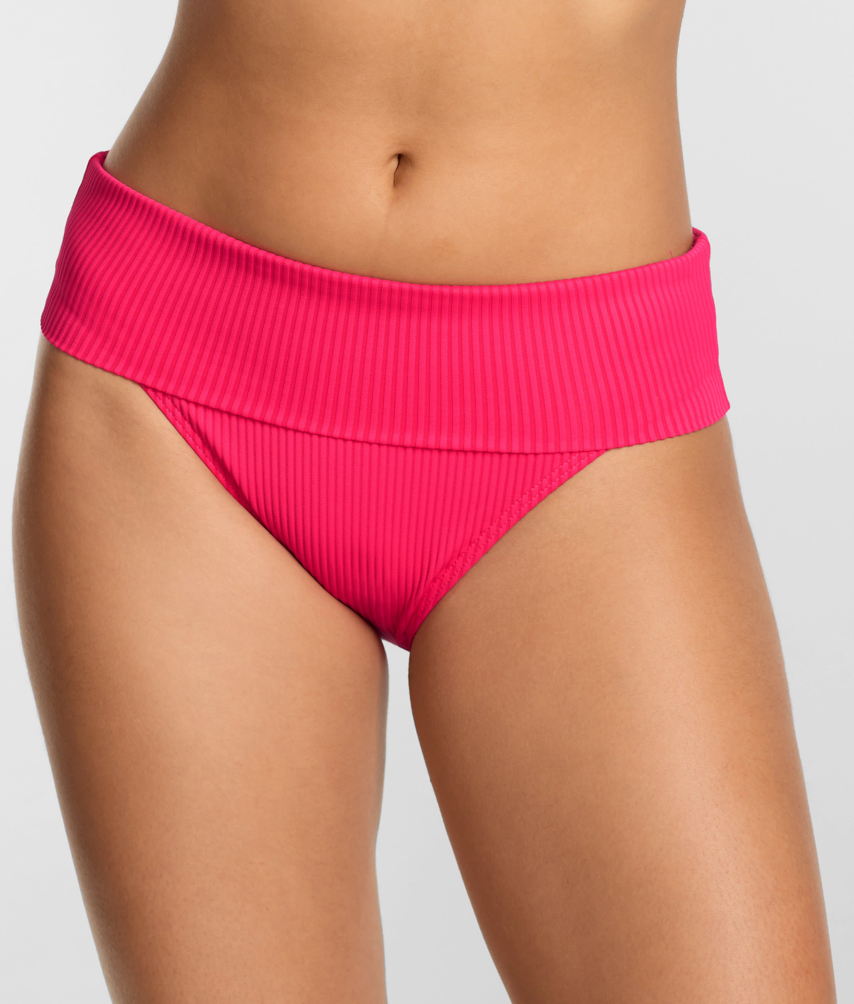 Printed Fold-Over High-Waist Bikini Bottom Color