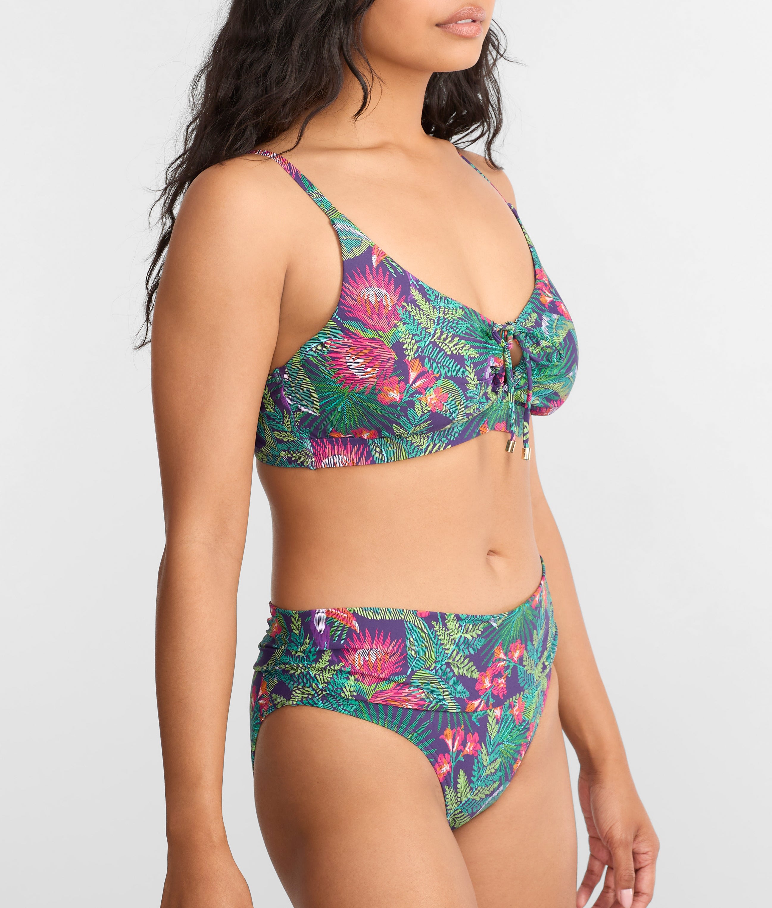Prints: 87% Recycled Nylon, 13% Spandex. Lining: 88% Polyester, 12% Spandex. Begonia Ribbed Fabric: 92% Nylon, 8% Spandex.