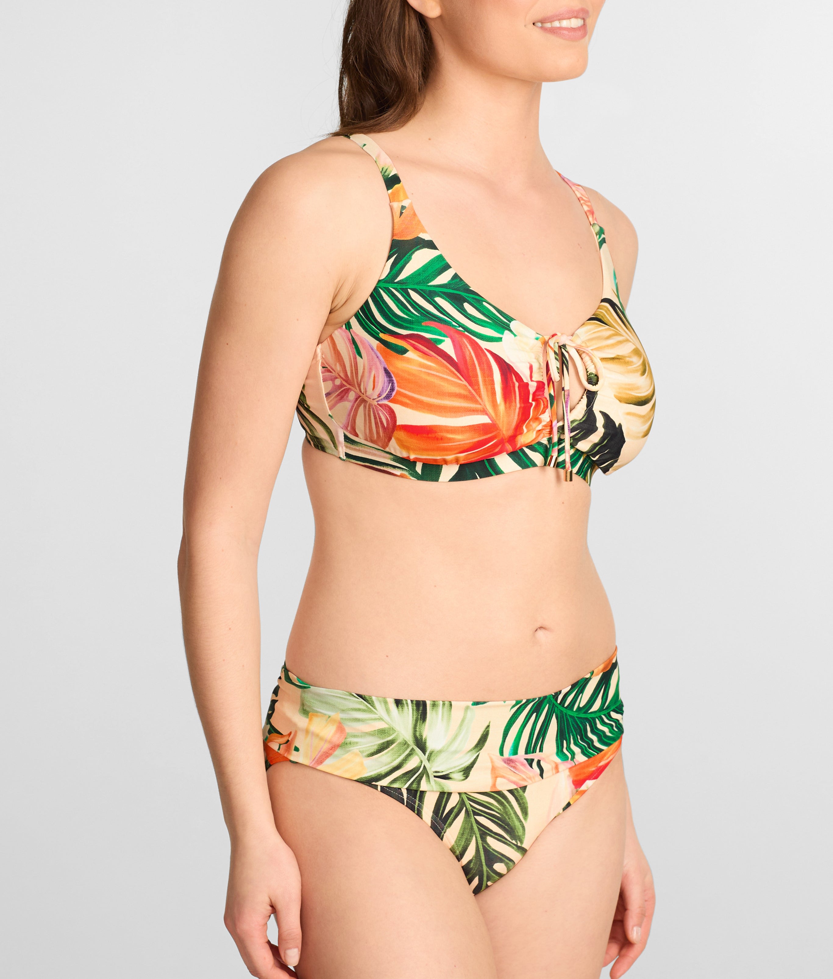 Prints: 87% Recycled Nylon, 13% Spandex. Lining: 88% Polyester, 12% Spandex. Begonia Ribbed Fabric: 92% Nylon, 8% Spandex.