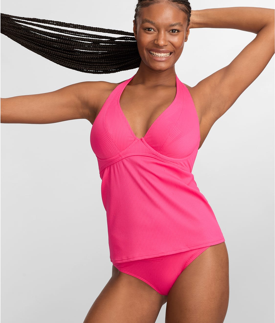Ribbed Muse Halter Underwire Tankini Top Size