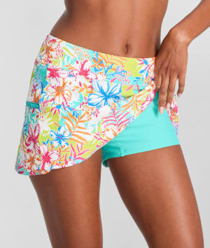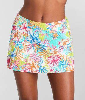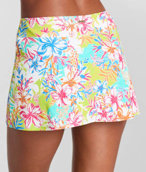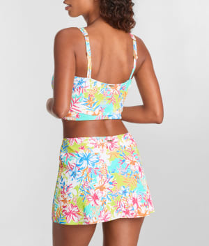 Prints: 87% Recycled Nylon, 13% Spandex. Lining: 88% Polyester, 12% Spandex. Ribbed Fabric: 92% Nylon, 8% Spandex.