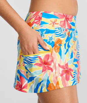 Prints: 87% Recycled Nylon, 13% Spandex. Lining: 88% Polyester, 12% Spandex. Ribbed Fabric: 92% Nylon, 8% Spandex.